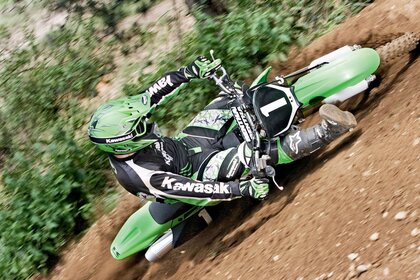 The participant of the motorcycle race easily overcomes the track