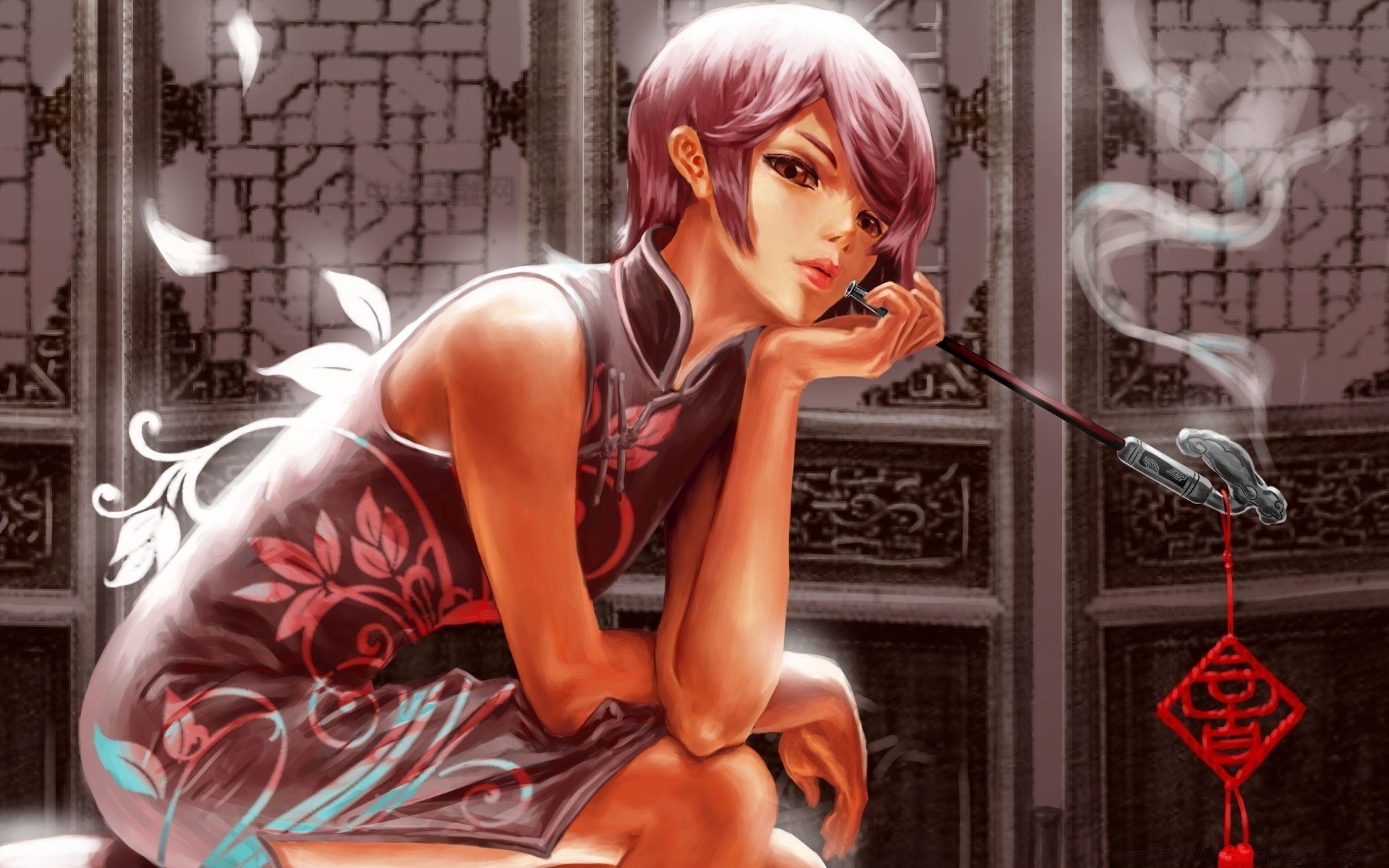 A blue-haired fairy in anime style surrounded by animals, birds and fabulous creatures