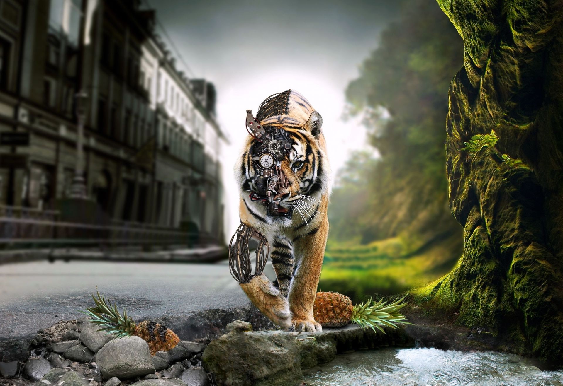 Fantastic mountain in the middle of the forest on the background of the starry skyFantastic mountain in the middle of the forest on the background of the starry sky