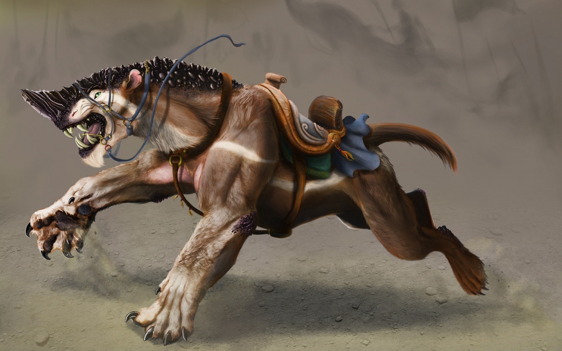 A fantastic animal with a saddle on its back