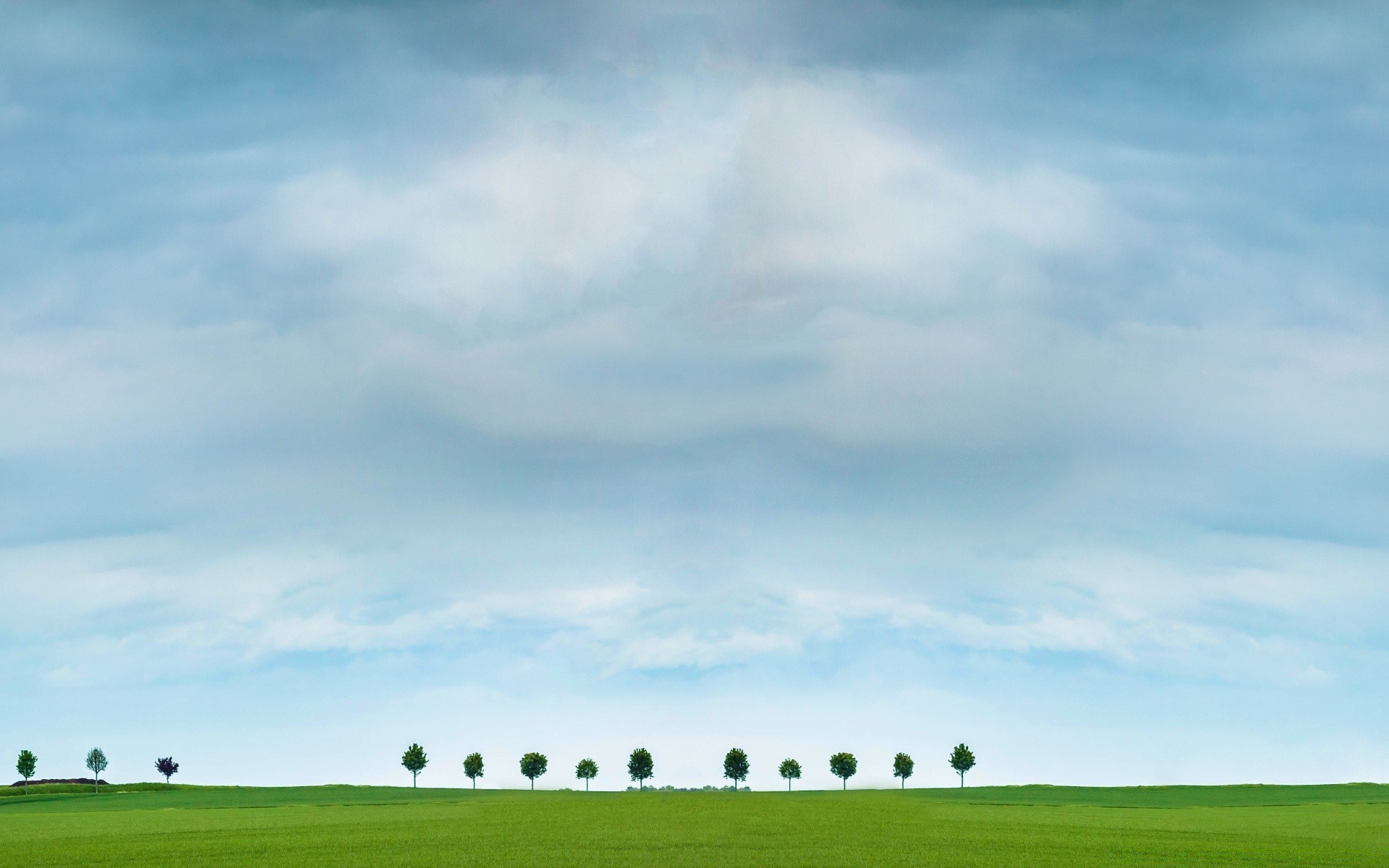 Lush green grass and blue cloudy sky