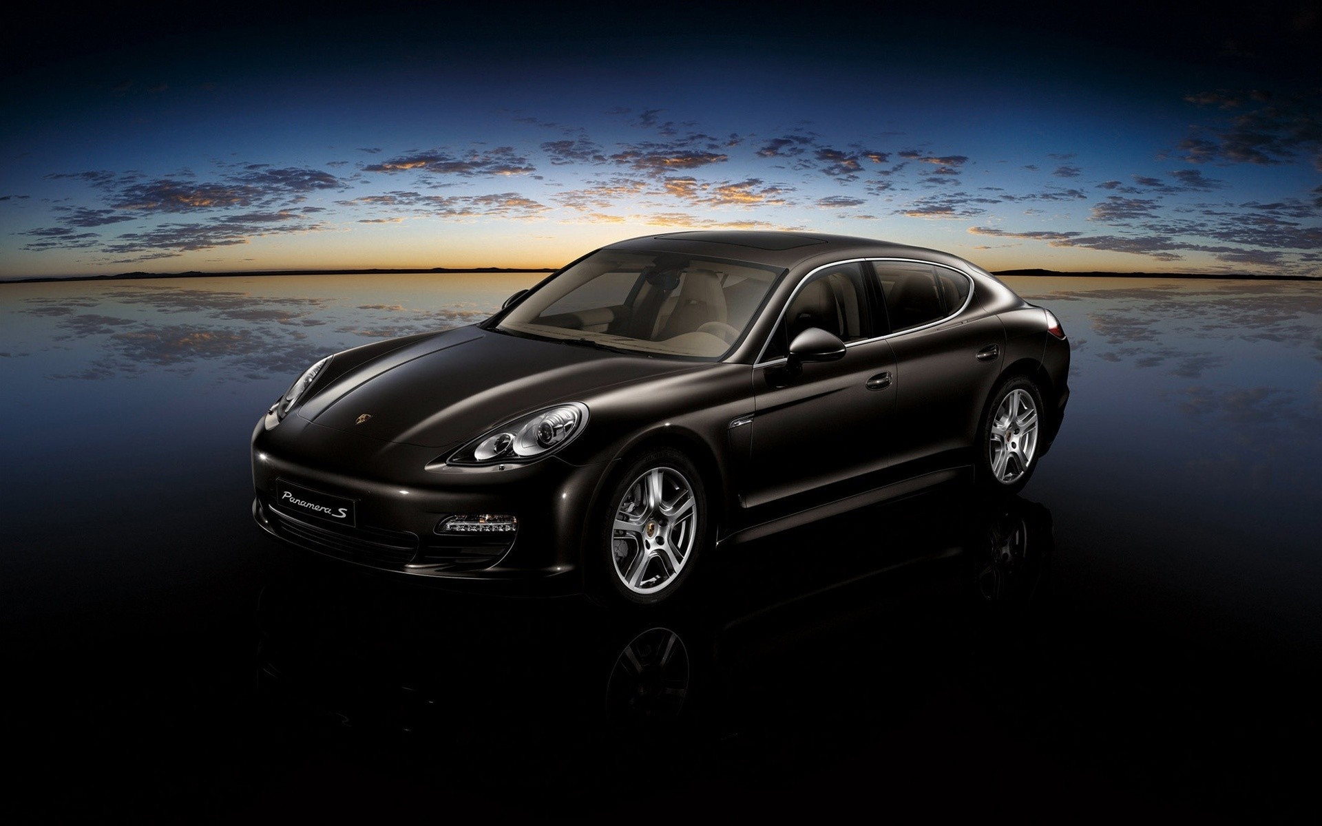 Black Porsche on the background of dawn