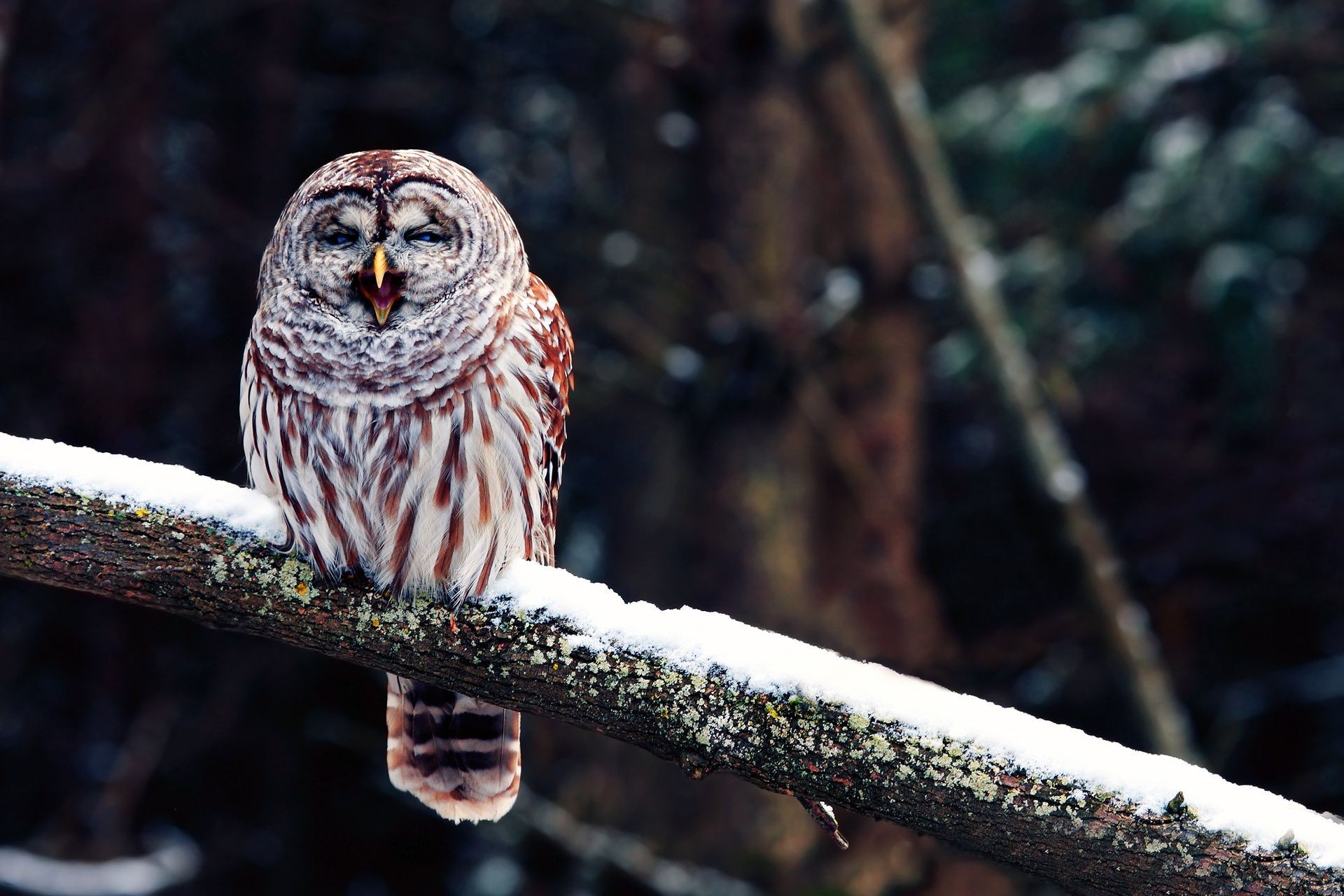Beautiful owl on a snowy branch
