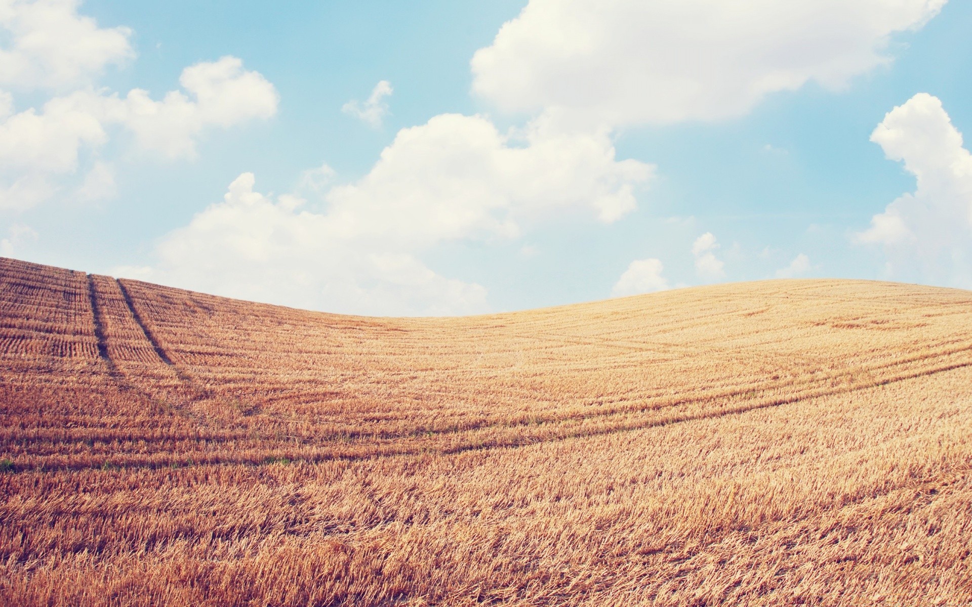 Beautiful landscape, field on the background of clouds