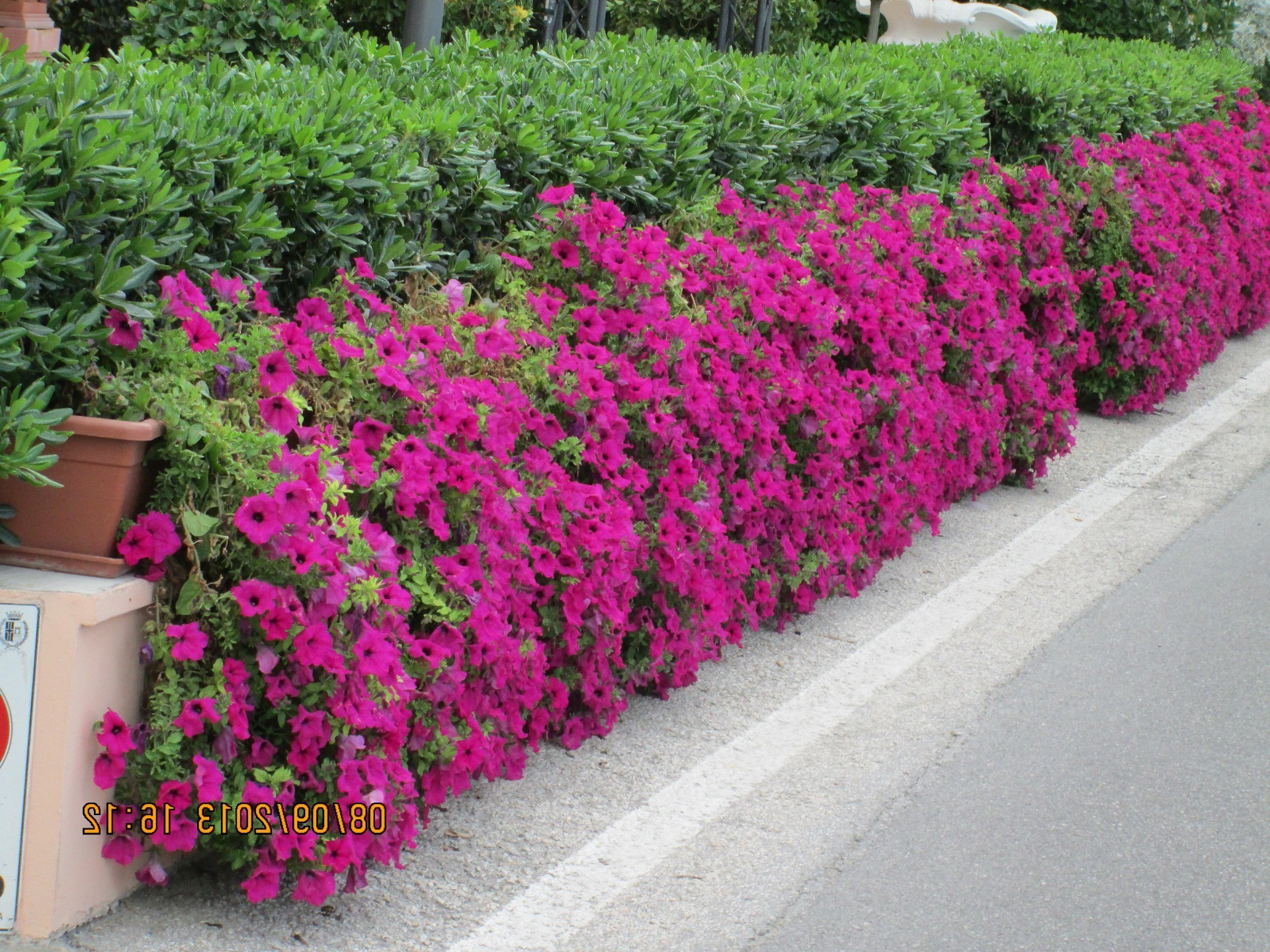 Flowering shrubs and here on the side of the road