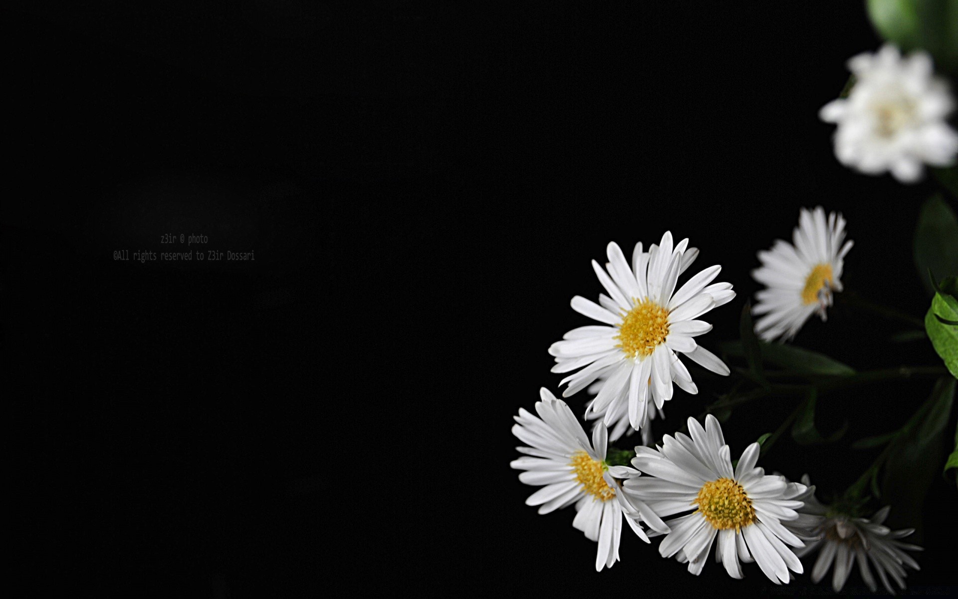 Only daisies on a black background