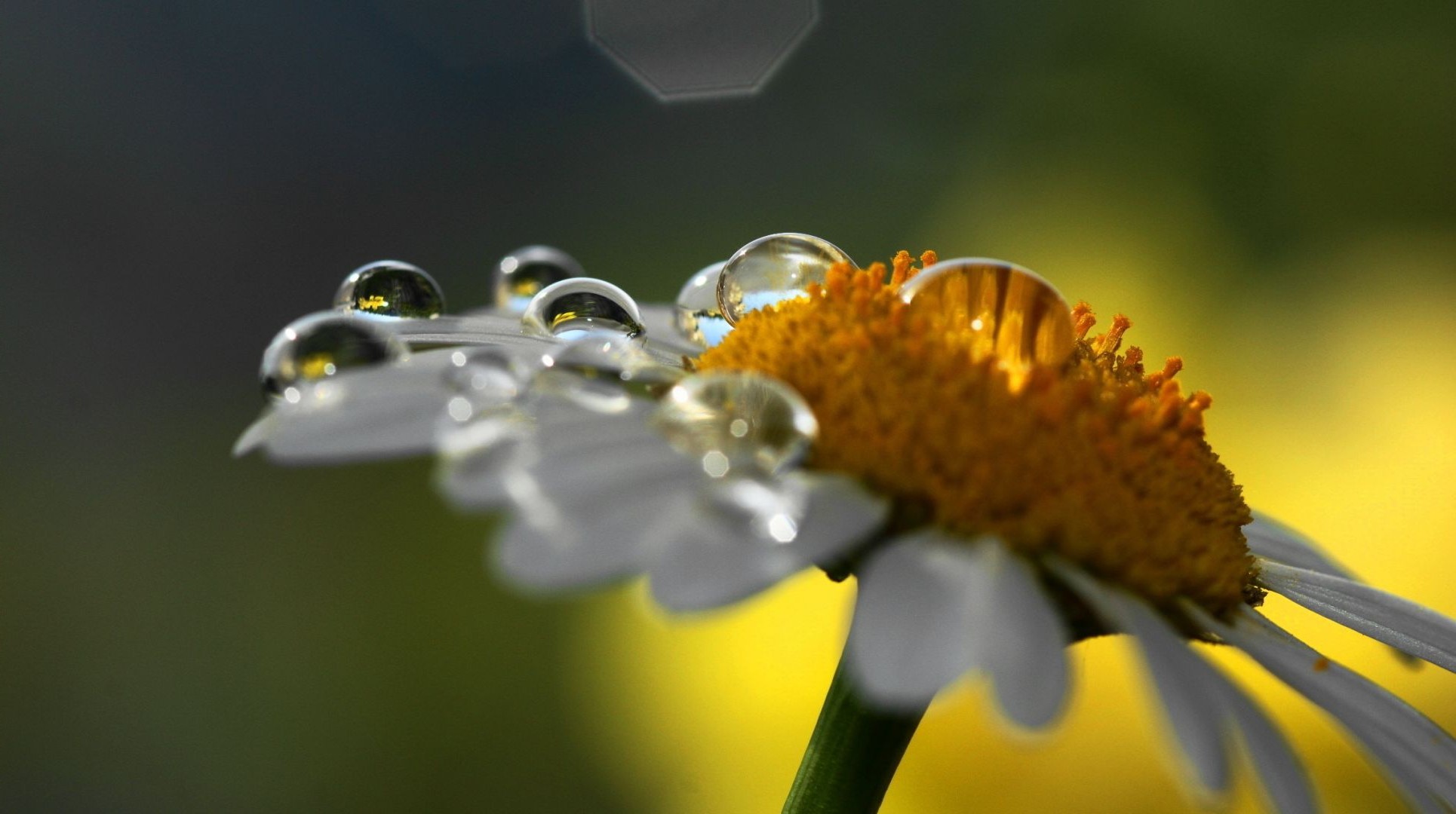 Chamomile flower in dew drops