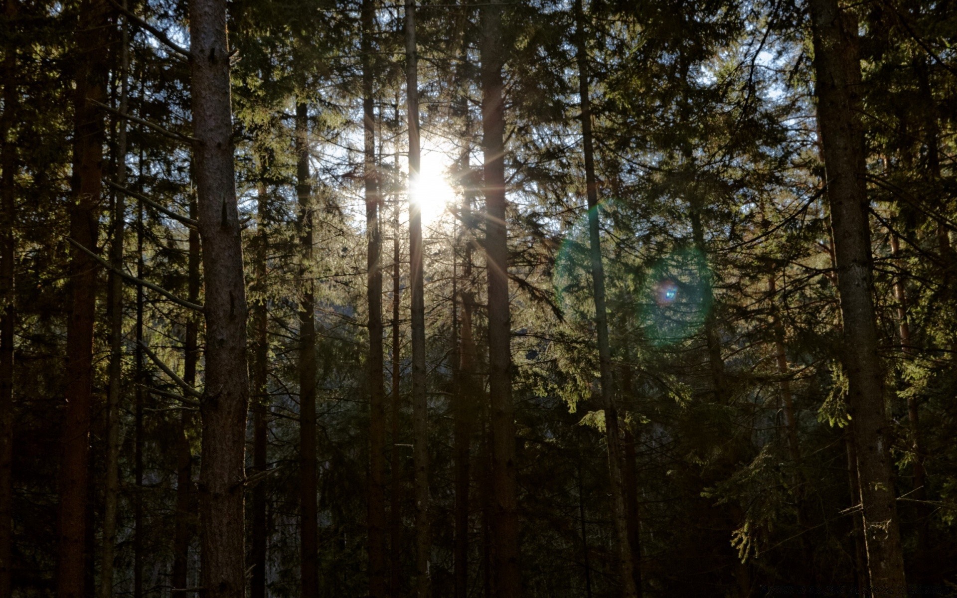Landscape: the sun through the forest