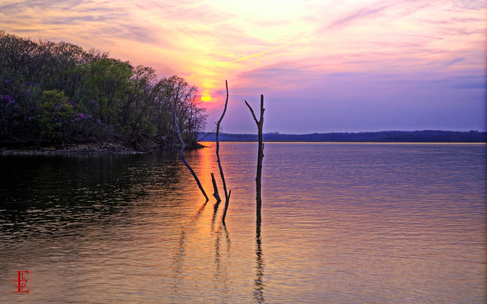 Purple sunset over the forest