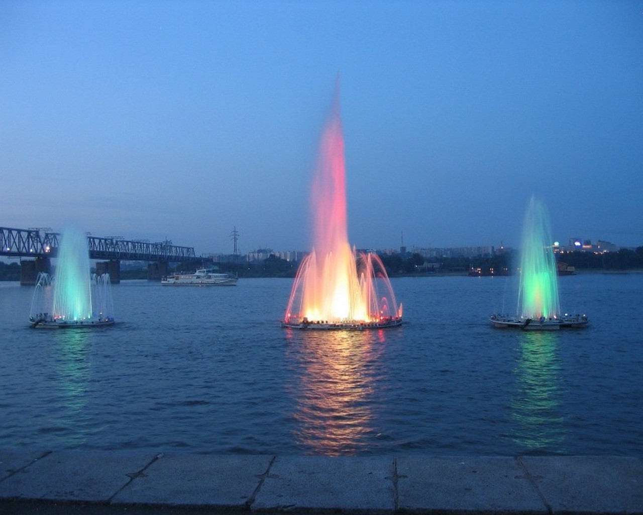 Wontans with backlight. light-music. city fountainsWontans with backlight. Light-music. City fountains