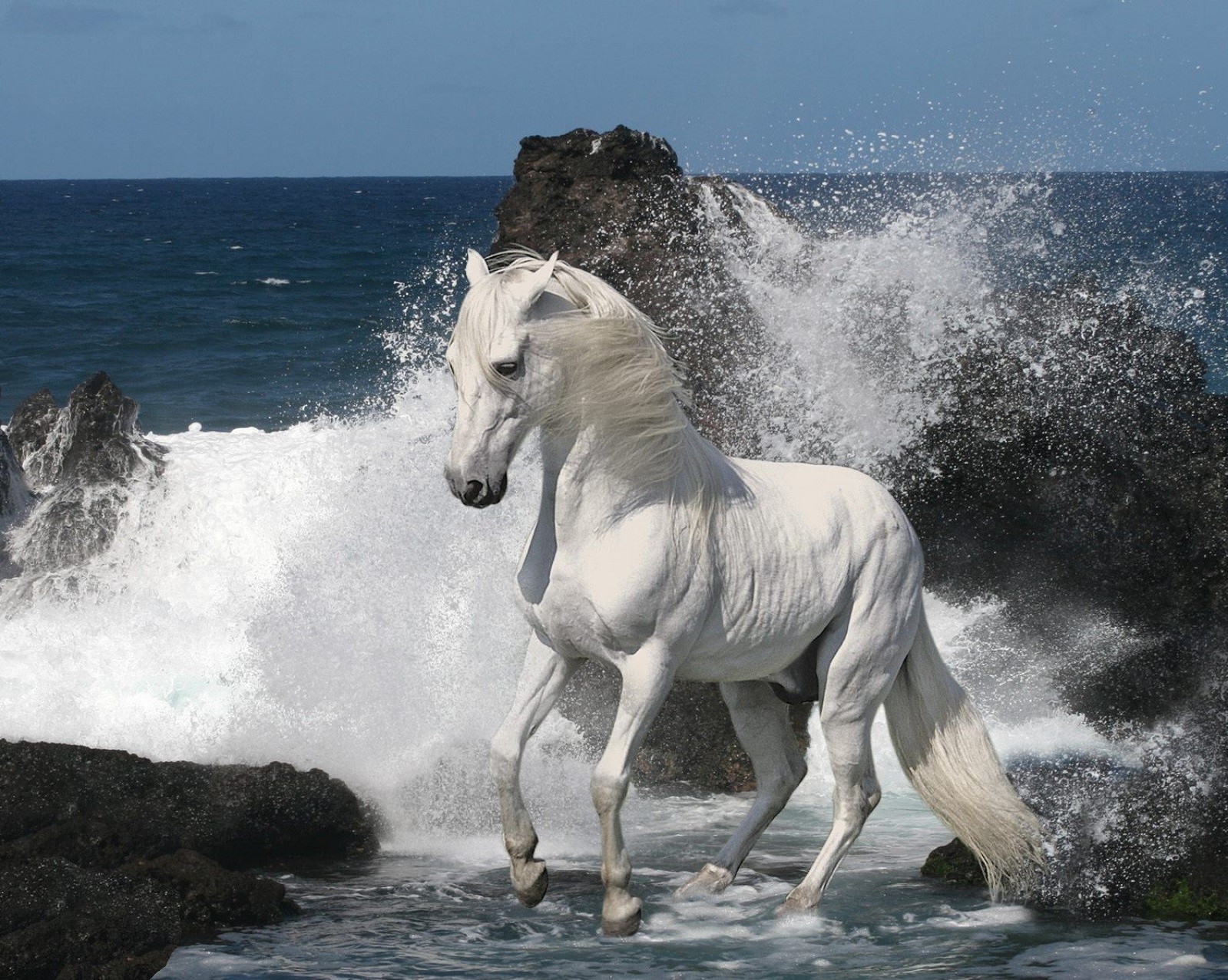 White horse on the shore