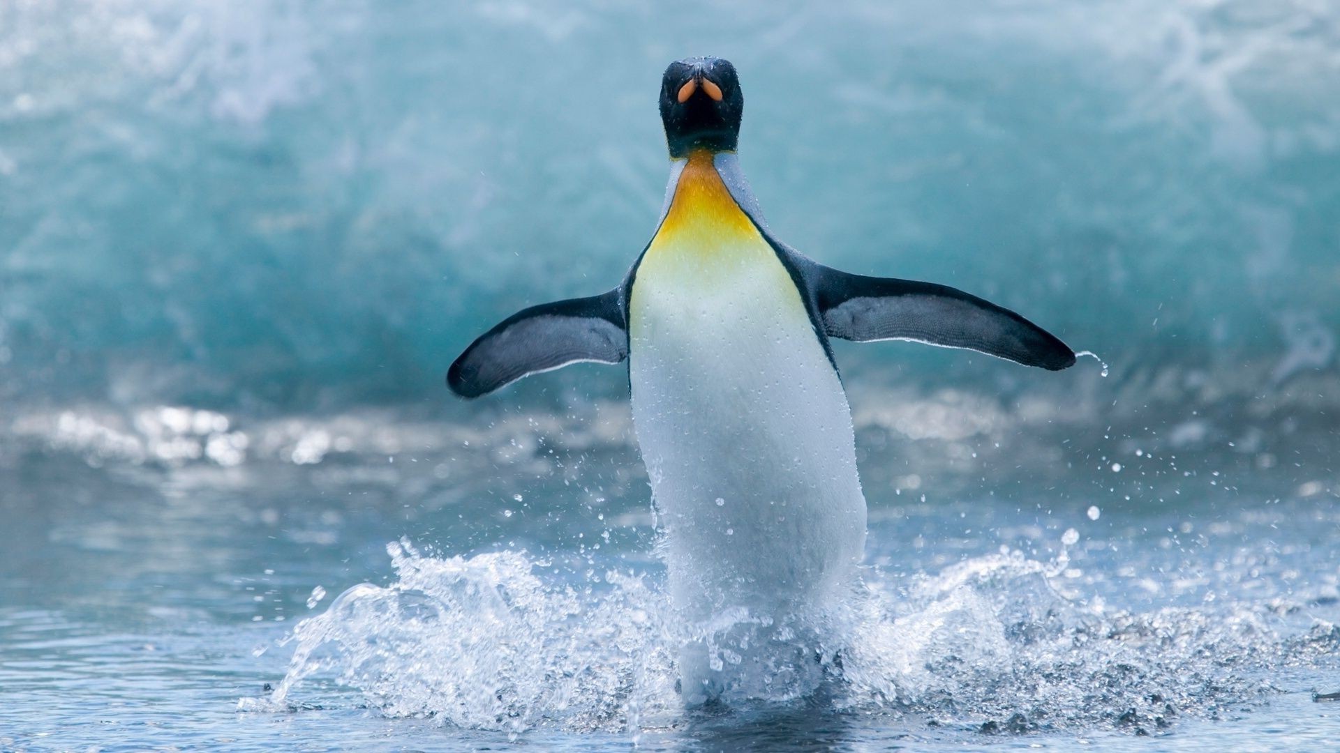 Penguin frolics in the pond