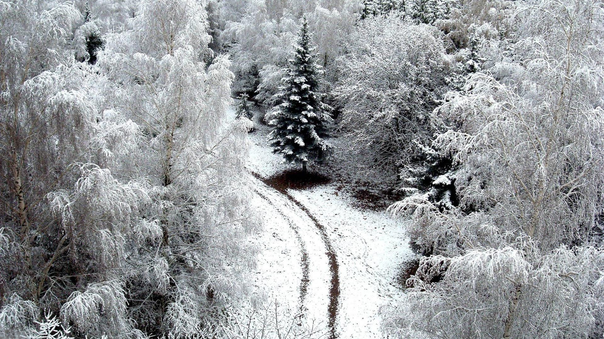 Snow-covered road on the background of a winter landscape