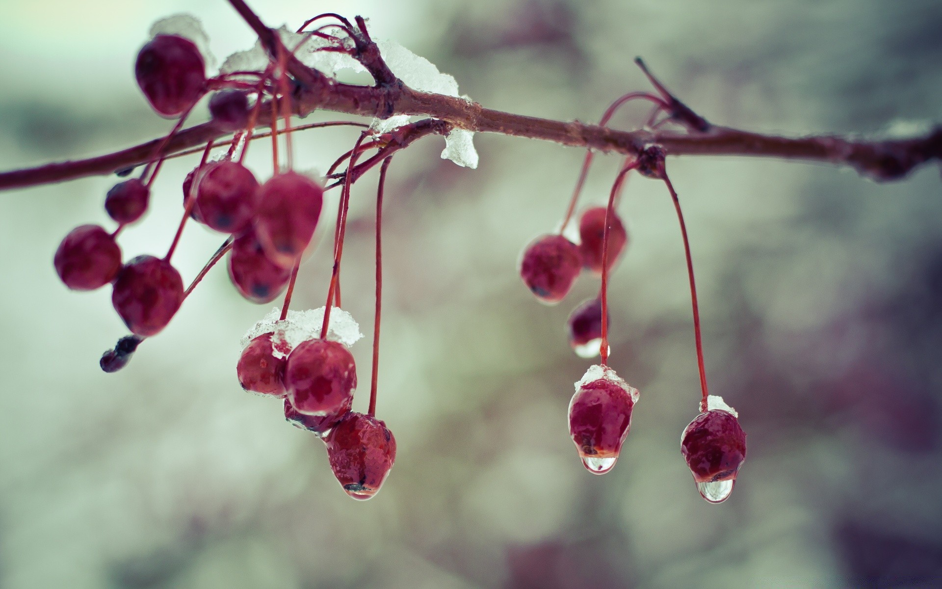 Berries in the snow blurred background