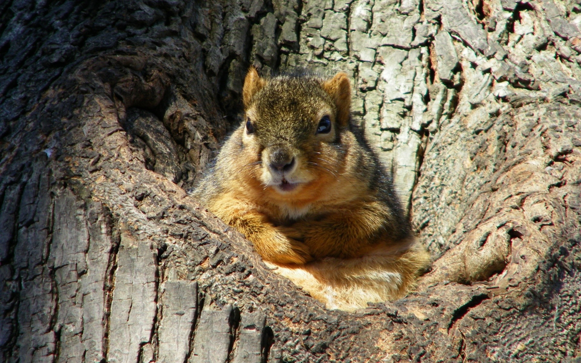 A forest squirrel in its nest
