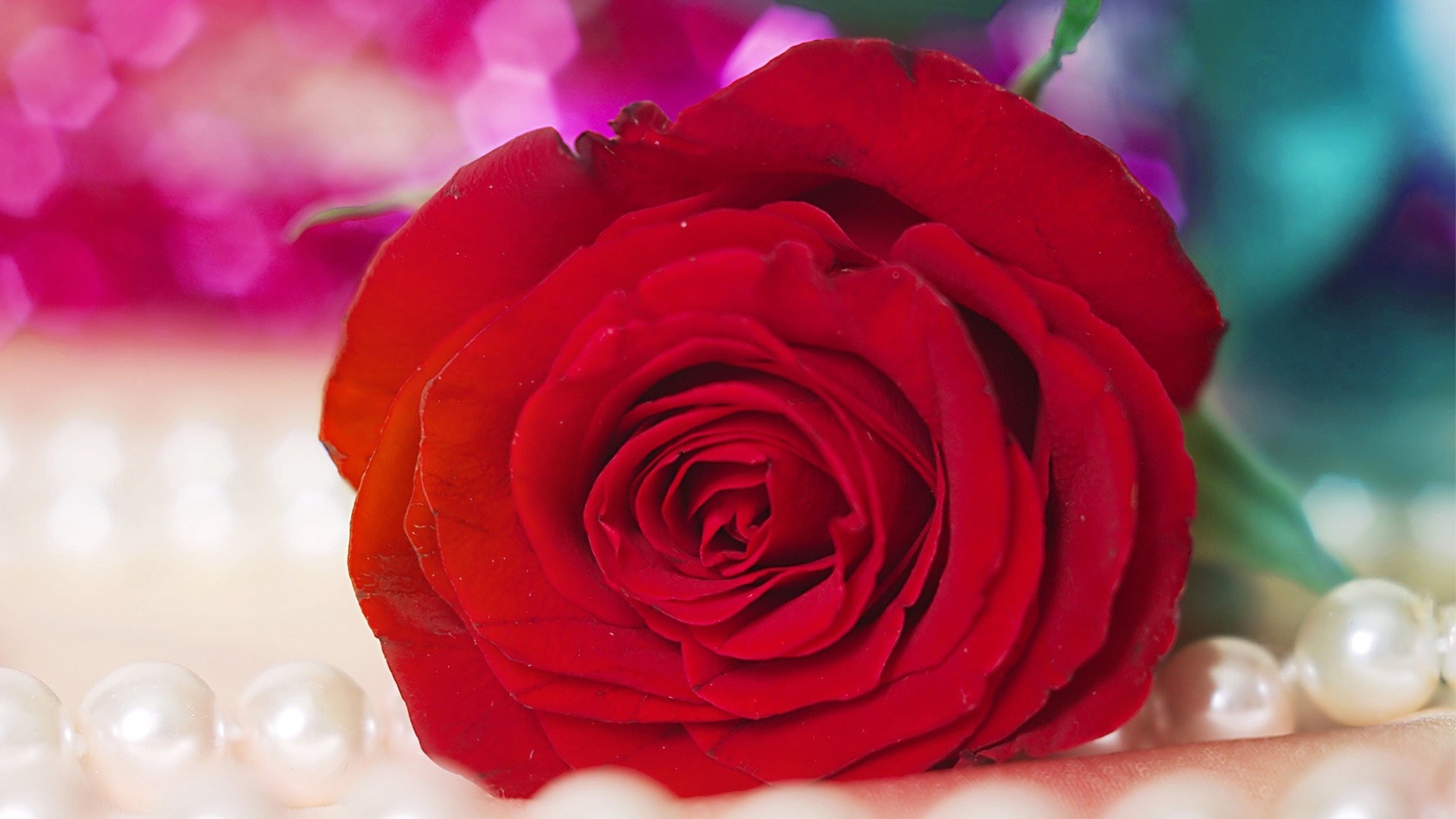 Red rose on a string of pearls