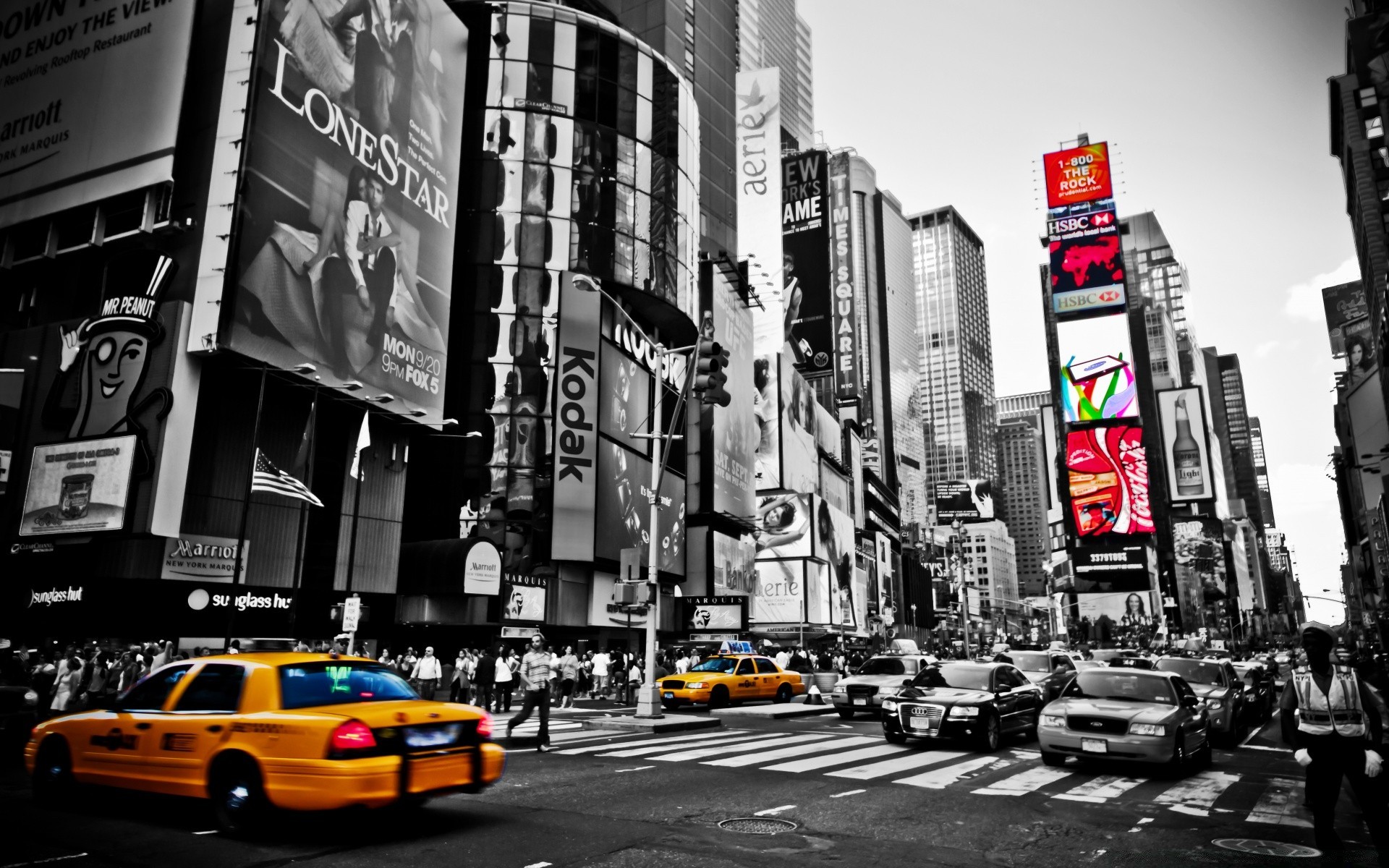 Gray snapshot of the city with contrasting color elements