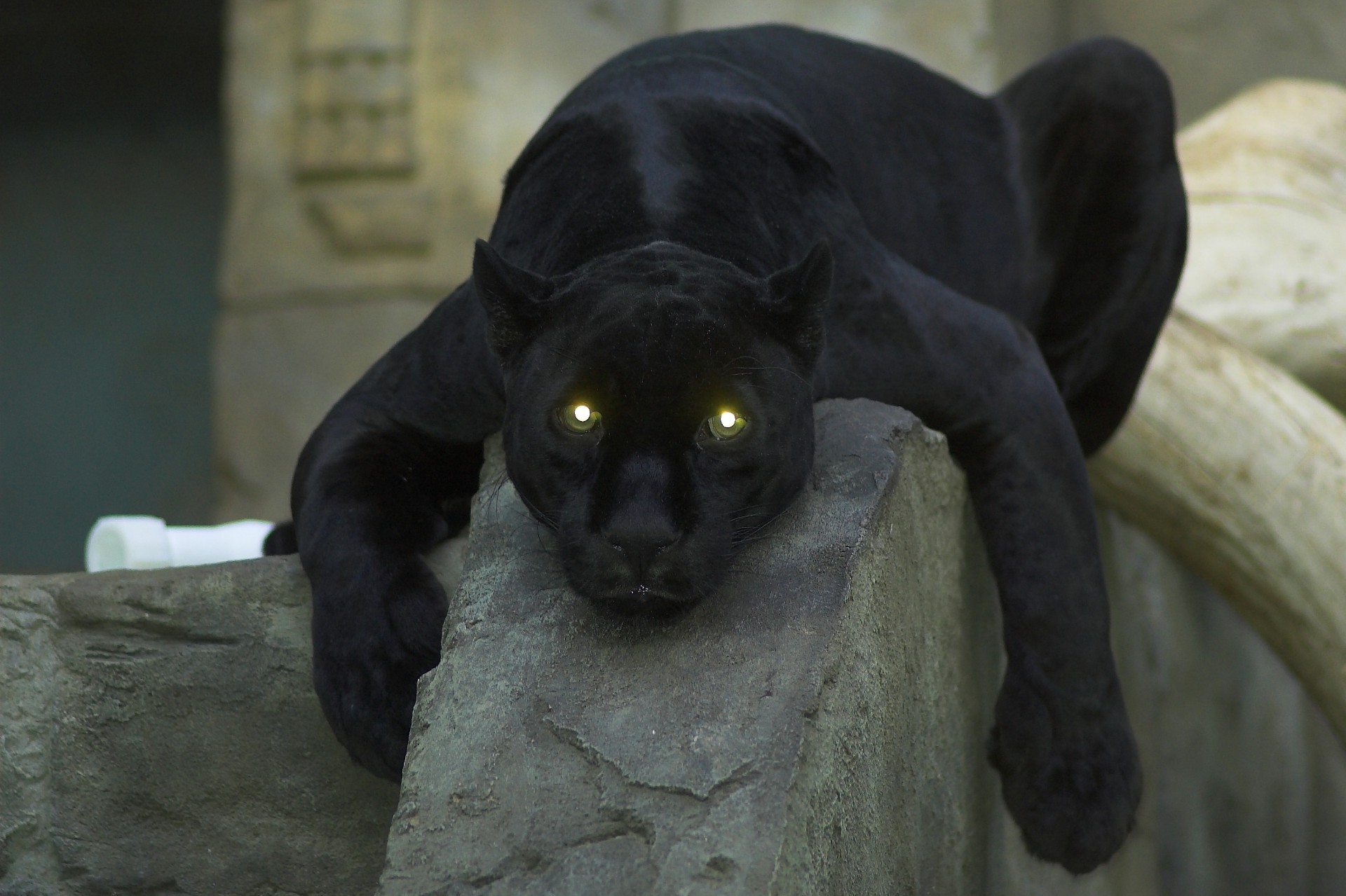 A panther with glowing green eyes