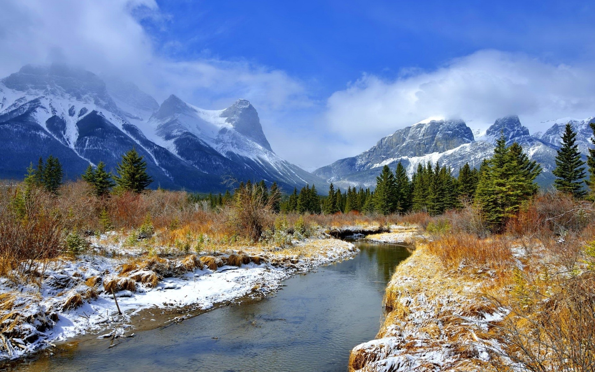 Winter cold landscape in the mountains