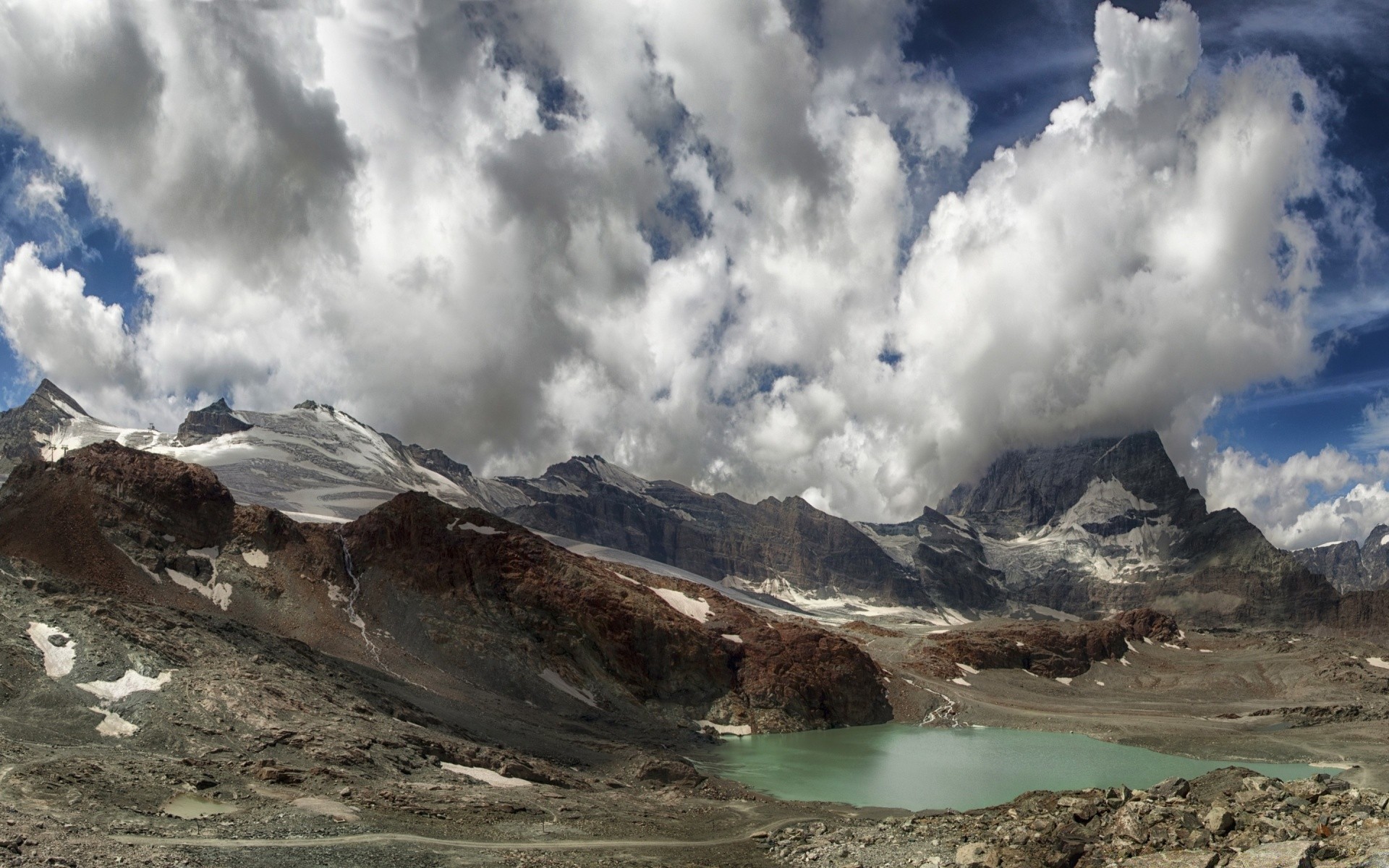 Mountain landscape with overhanging white clouds