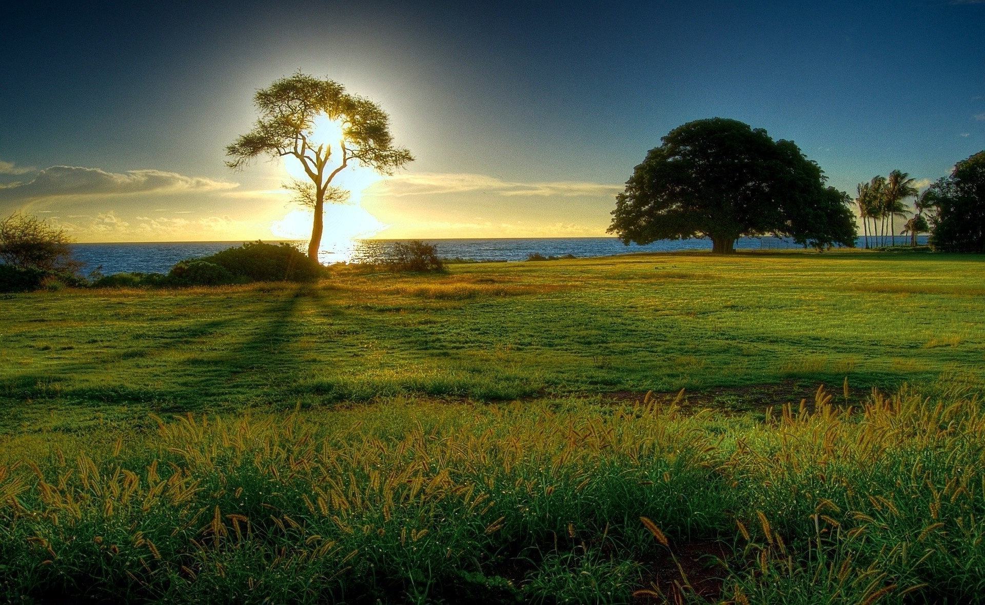 Bright green tropical trees bathed in the sun