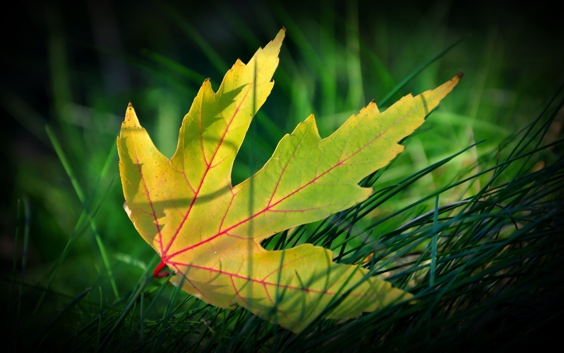An autumn leaf that fell on the grass