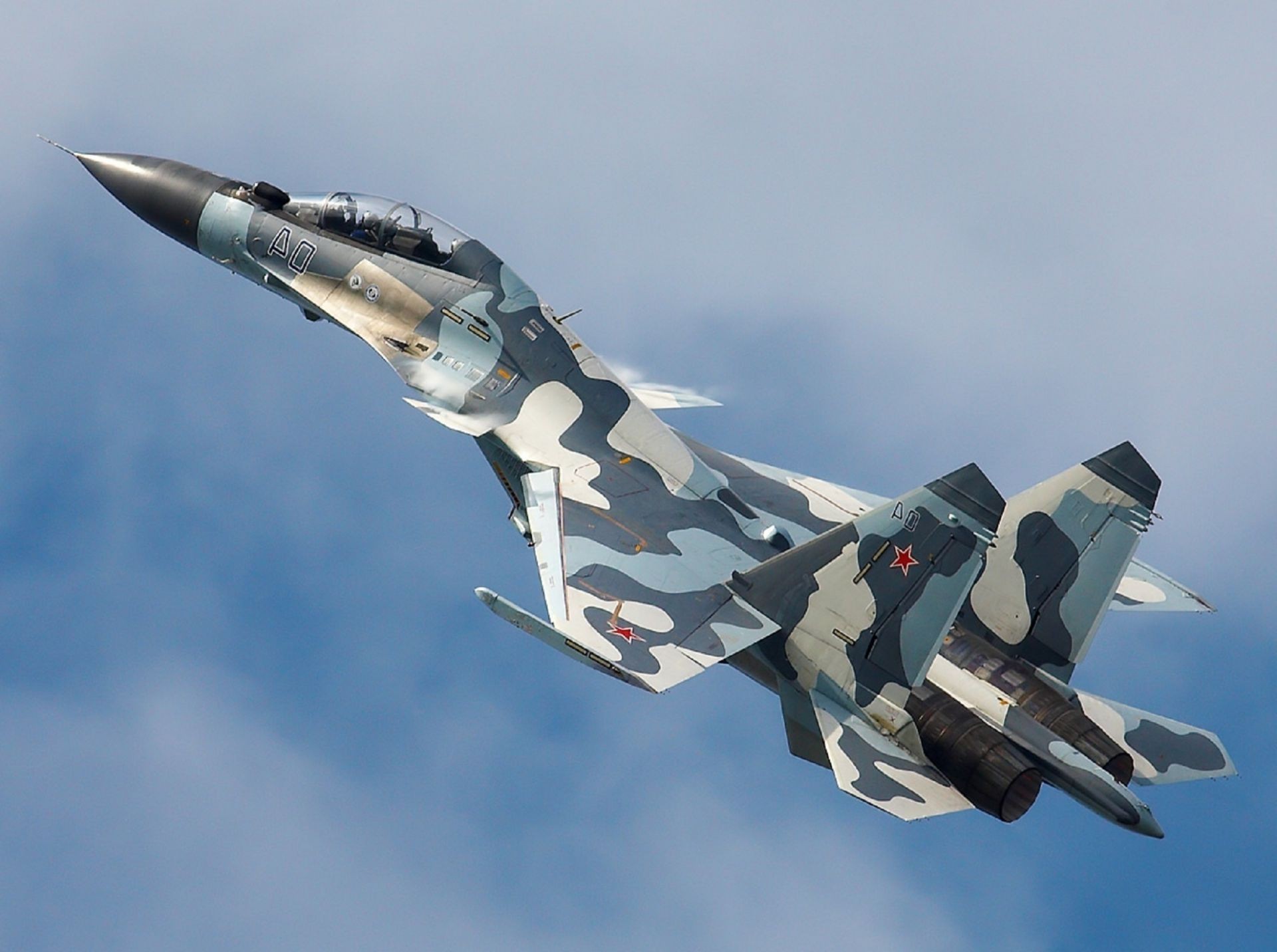 A military fighter flying through the sky