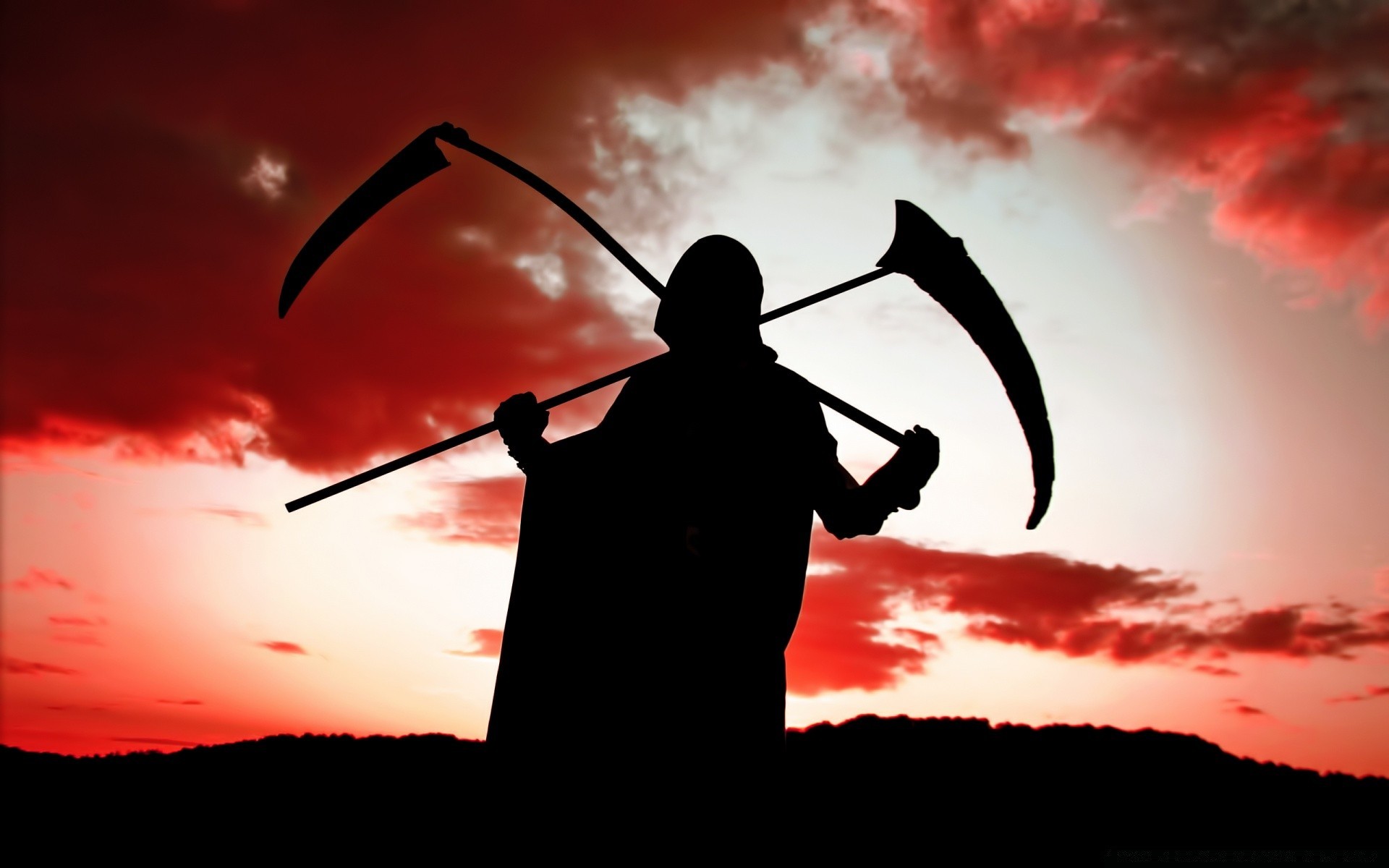 At sunset, death with a scythe