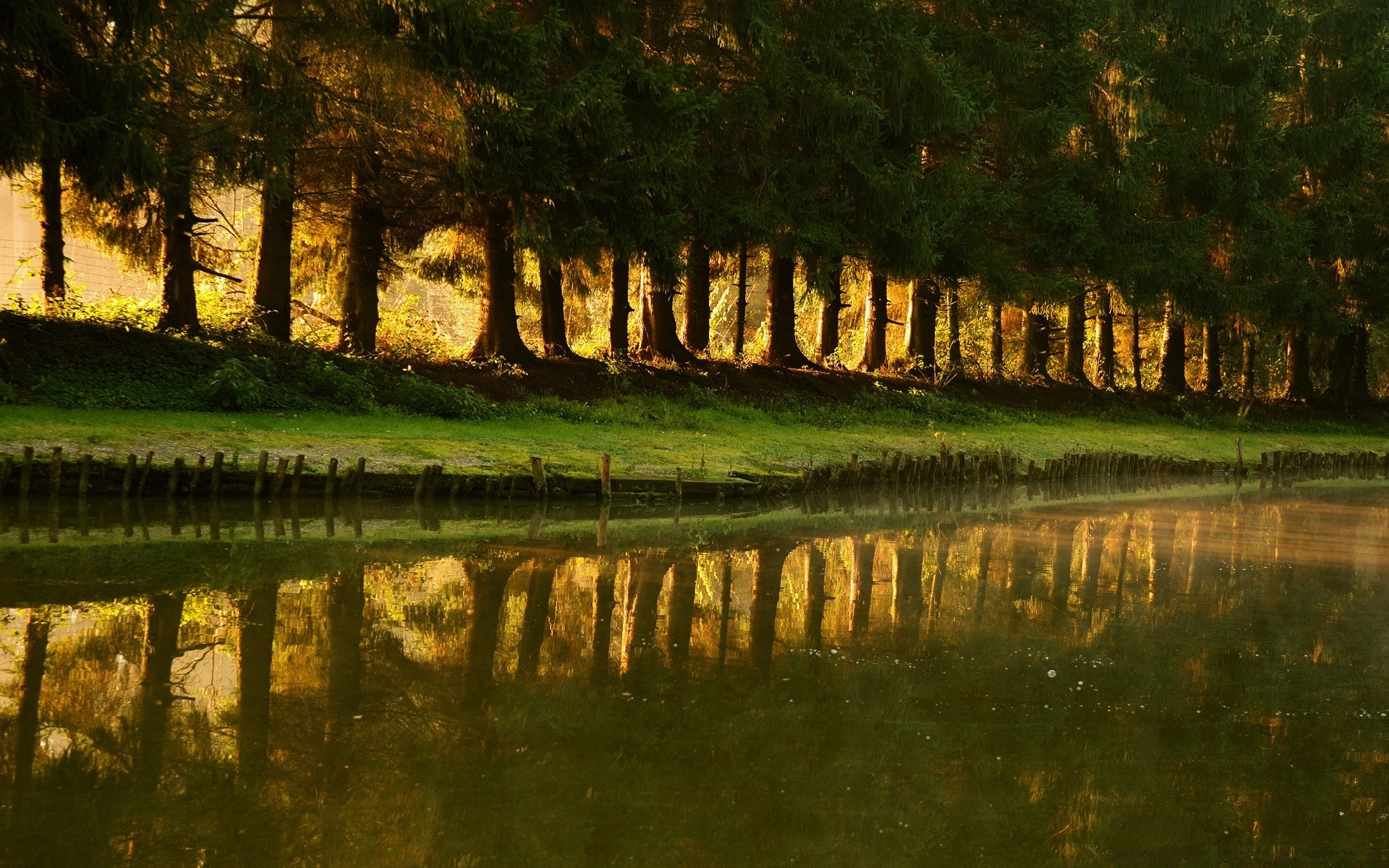 Fence of trees around the lake