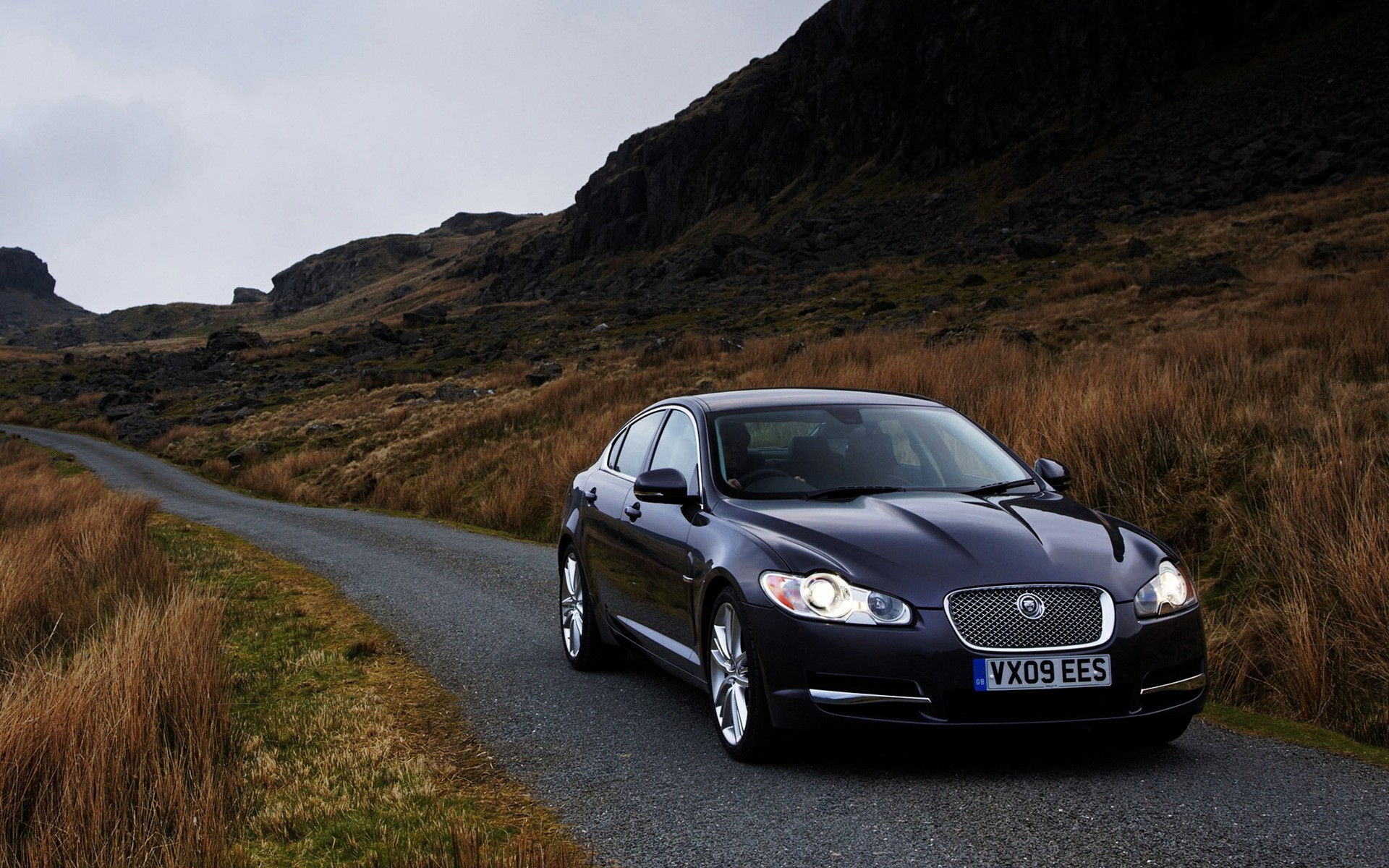 The car is driving along the road to the lighthouse