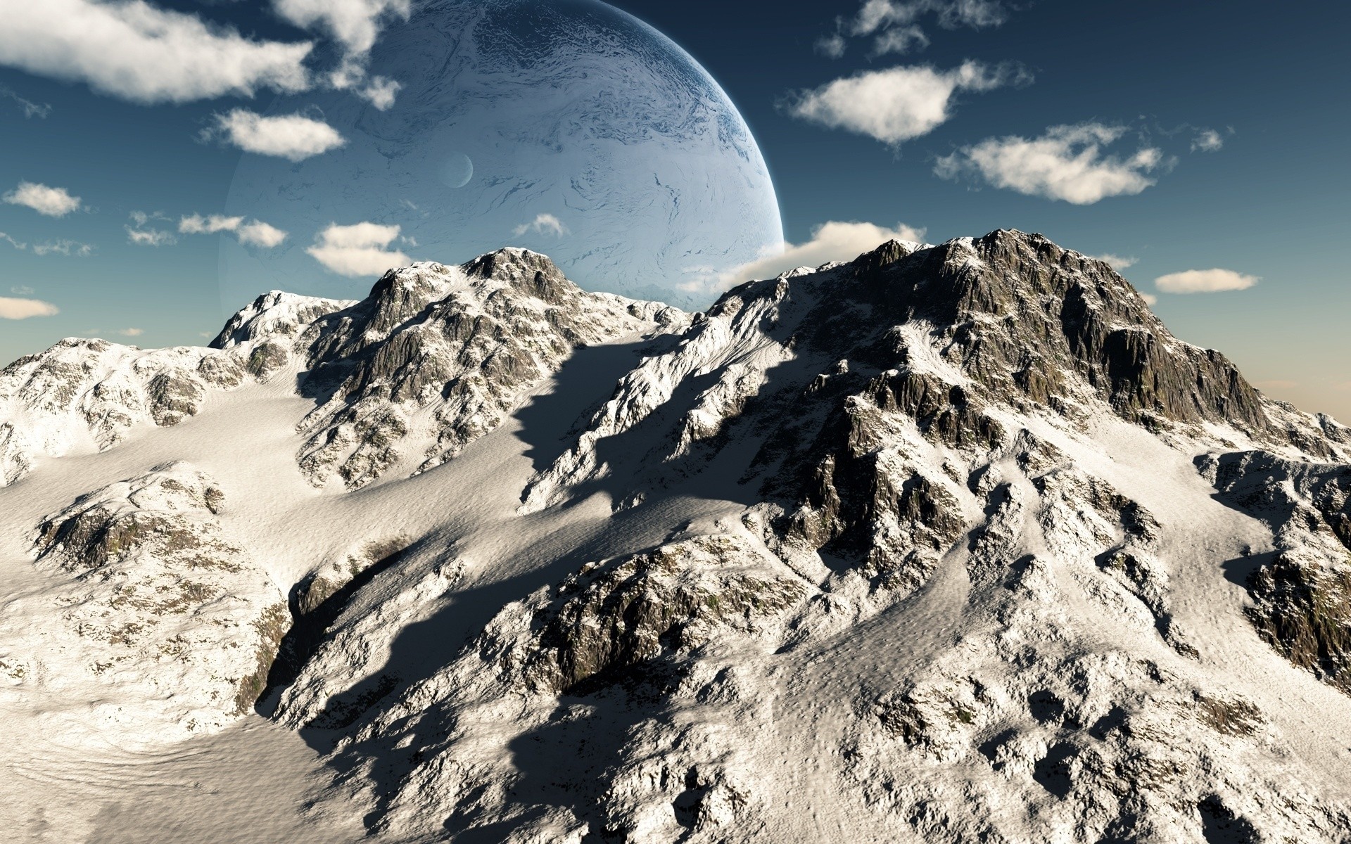 White snow on the mountains