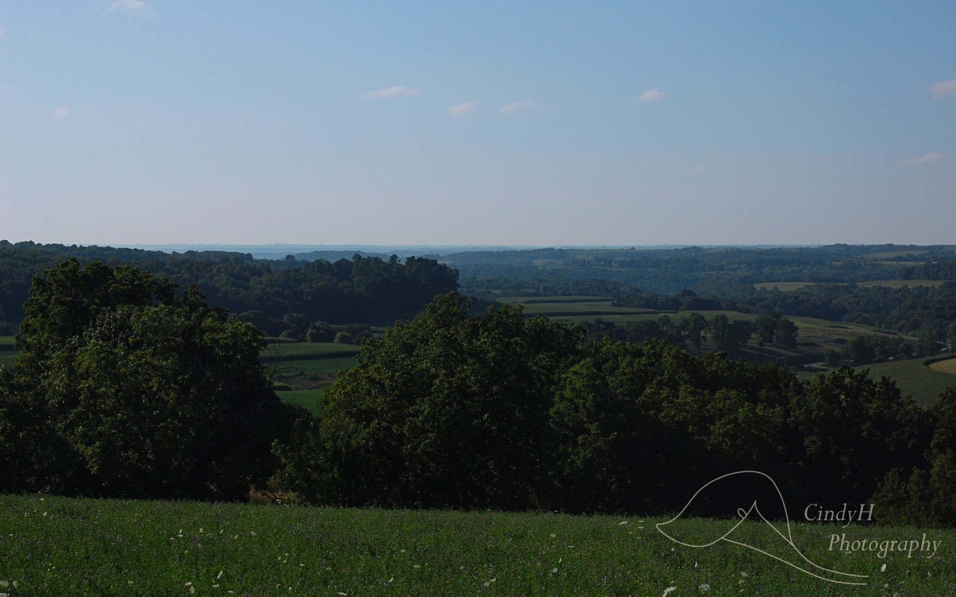 The deciduous forest is replaced by a plowed field and continues in a series of meadows