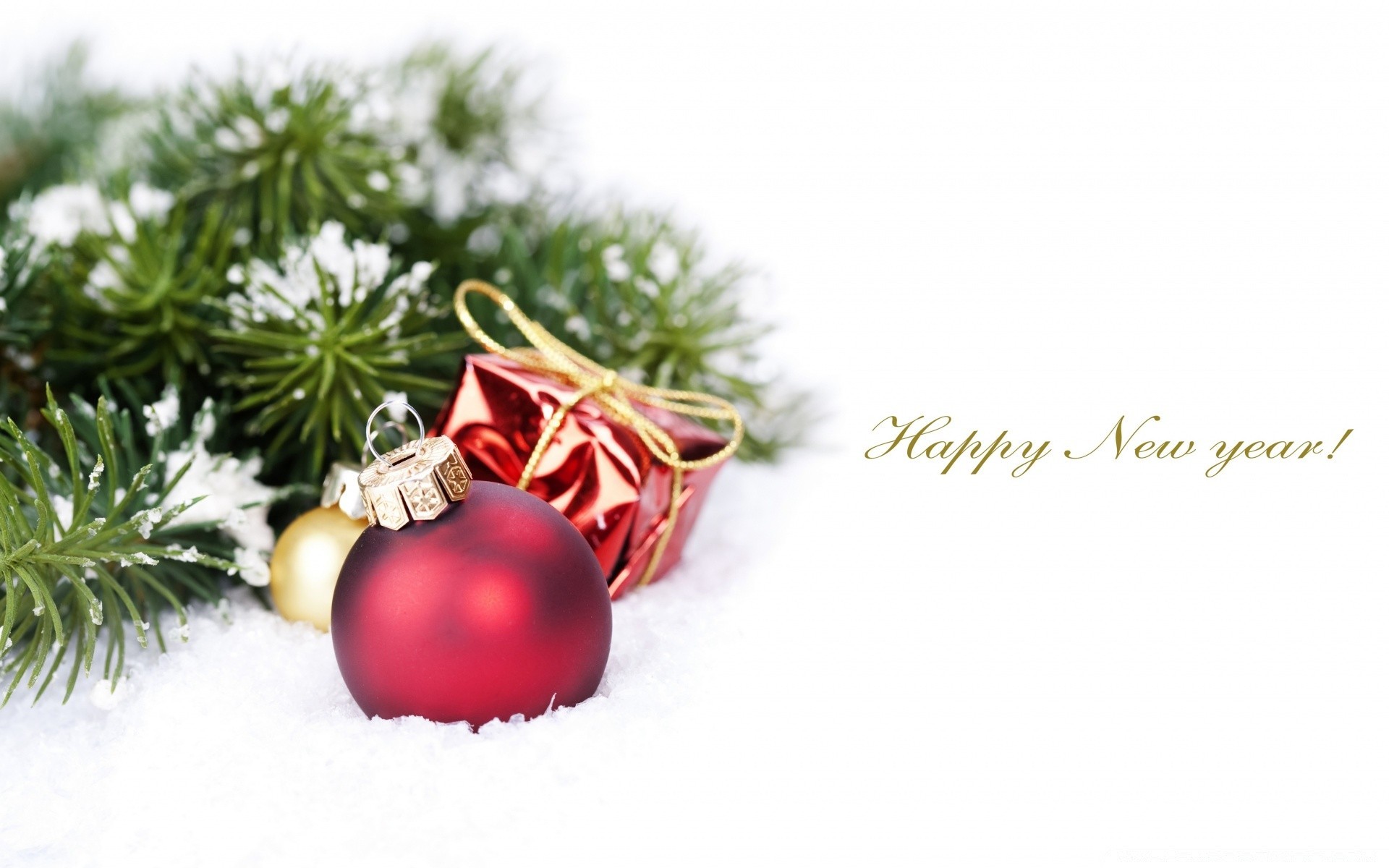 Christmas tree toys on pine branches with snowflakes