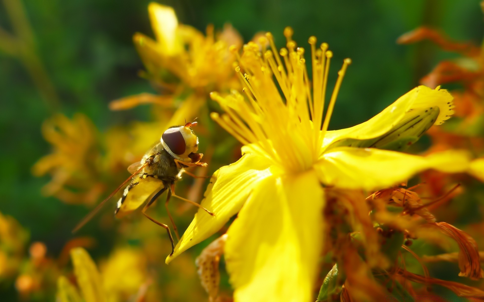Macro photography of a yellow flower with a bee