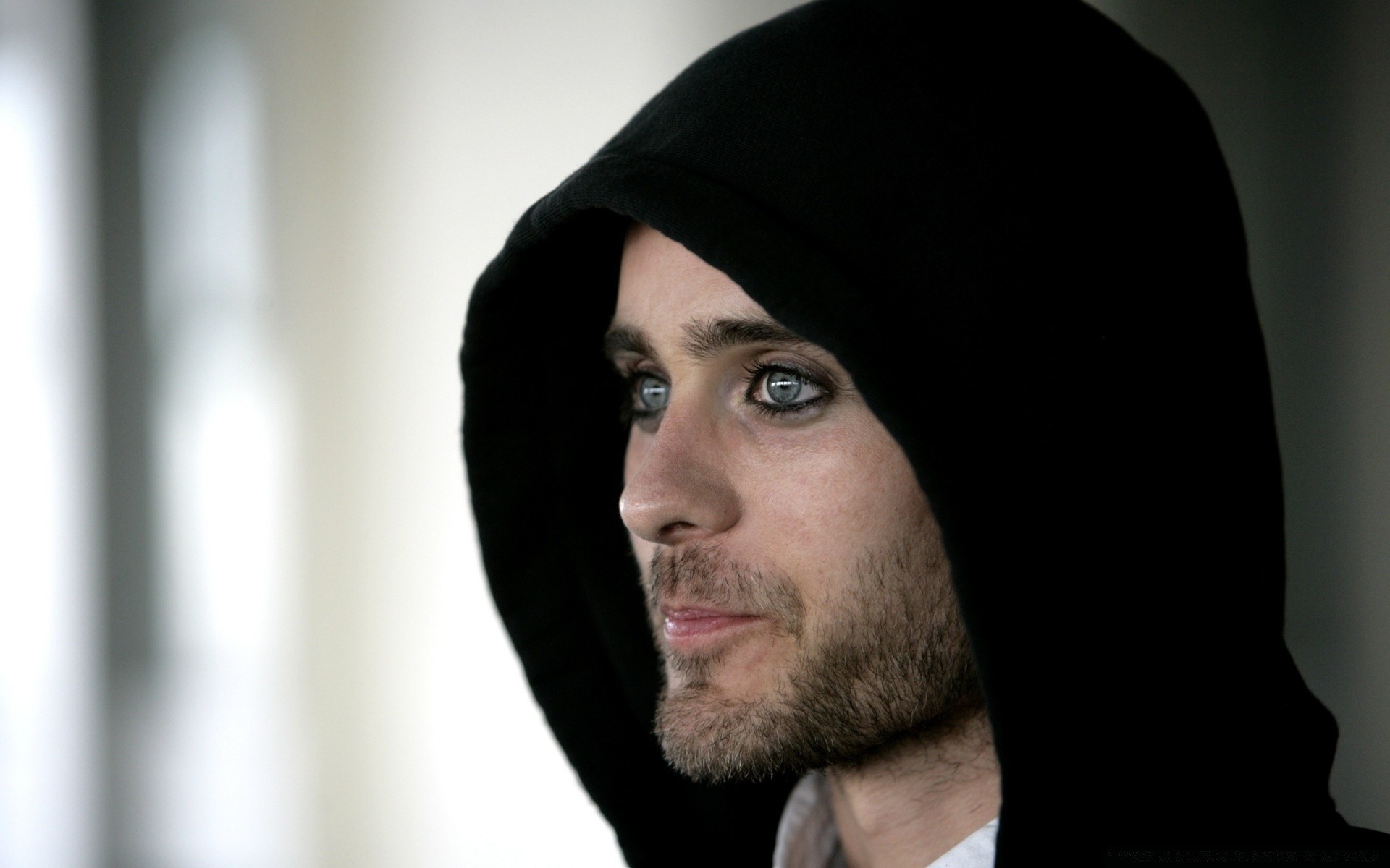 The head of a man in a black hood