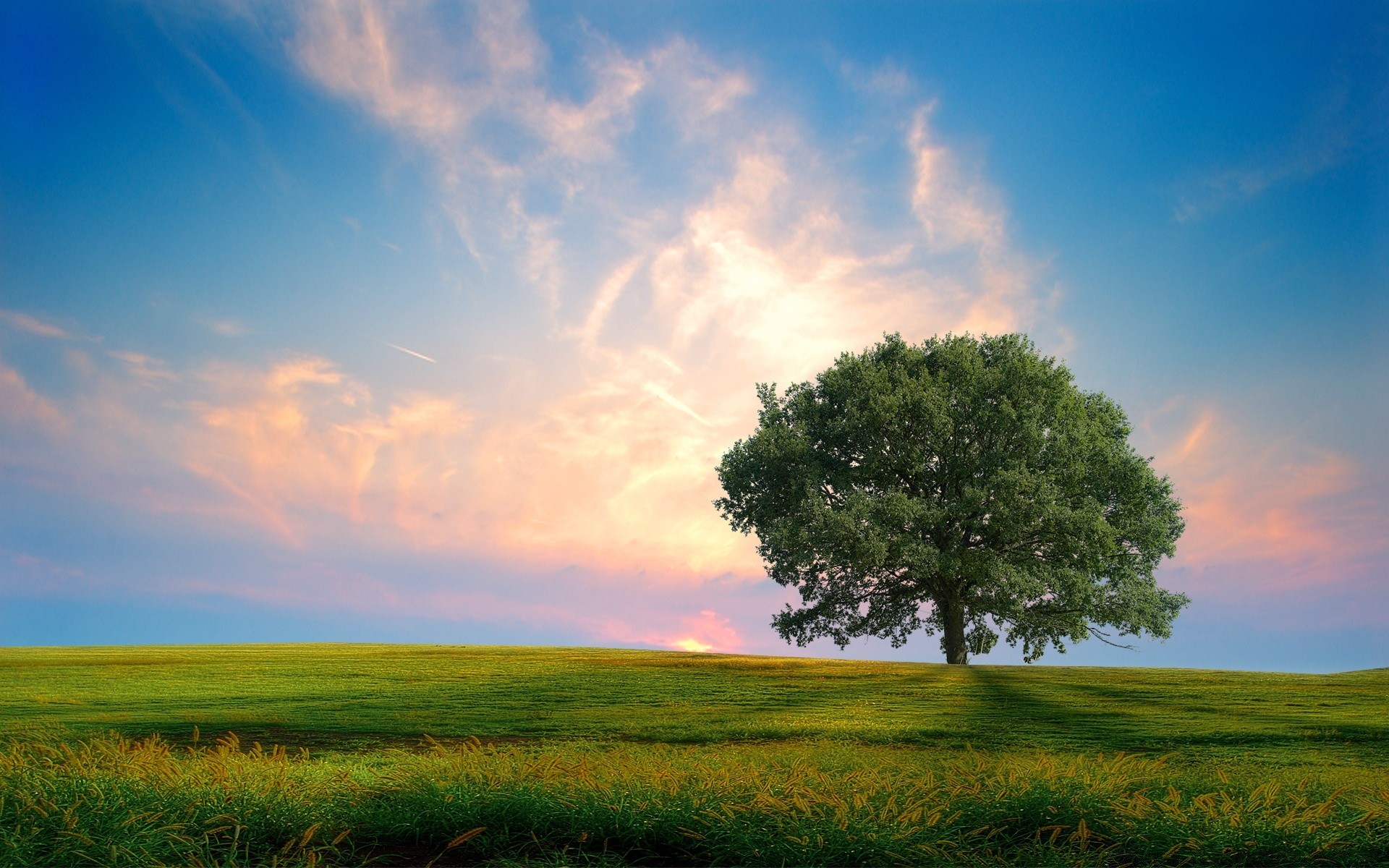 Beautiful landscape. Beautiful sky. Tree. Grass