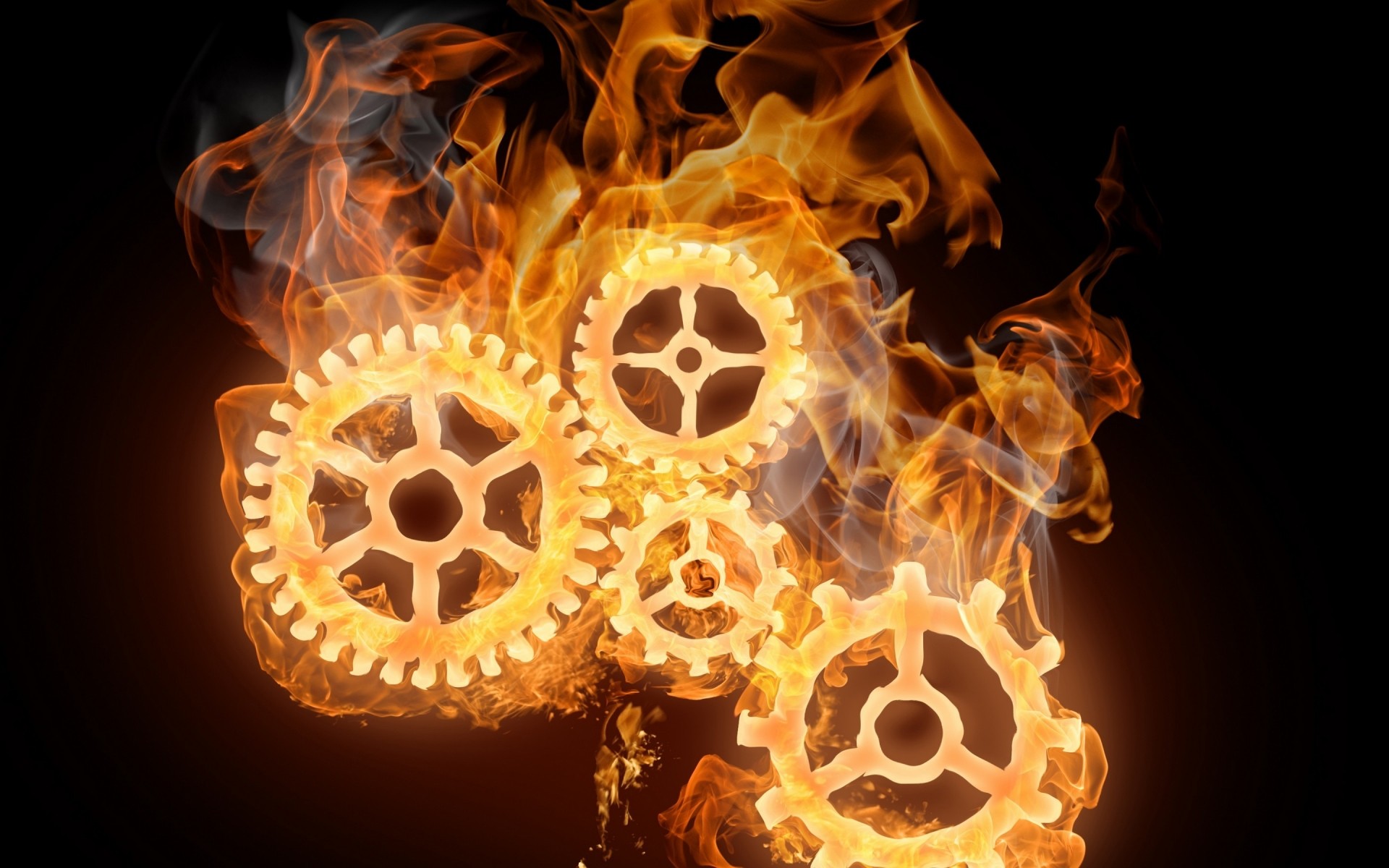 Four spinning fiery gears