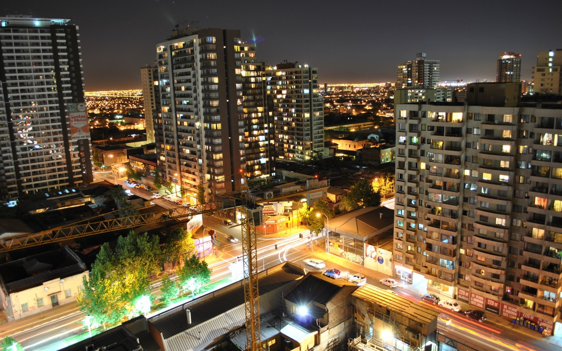 A white sofa and a night light on a table against a background of brown tiles and a glossy floor
