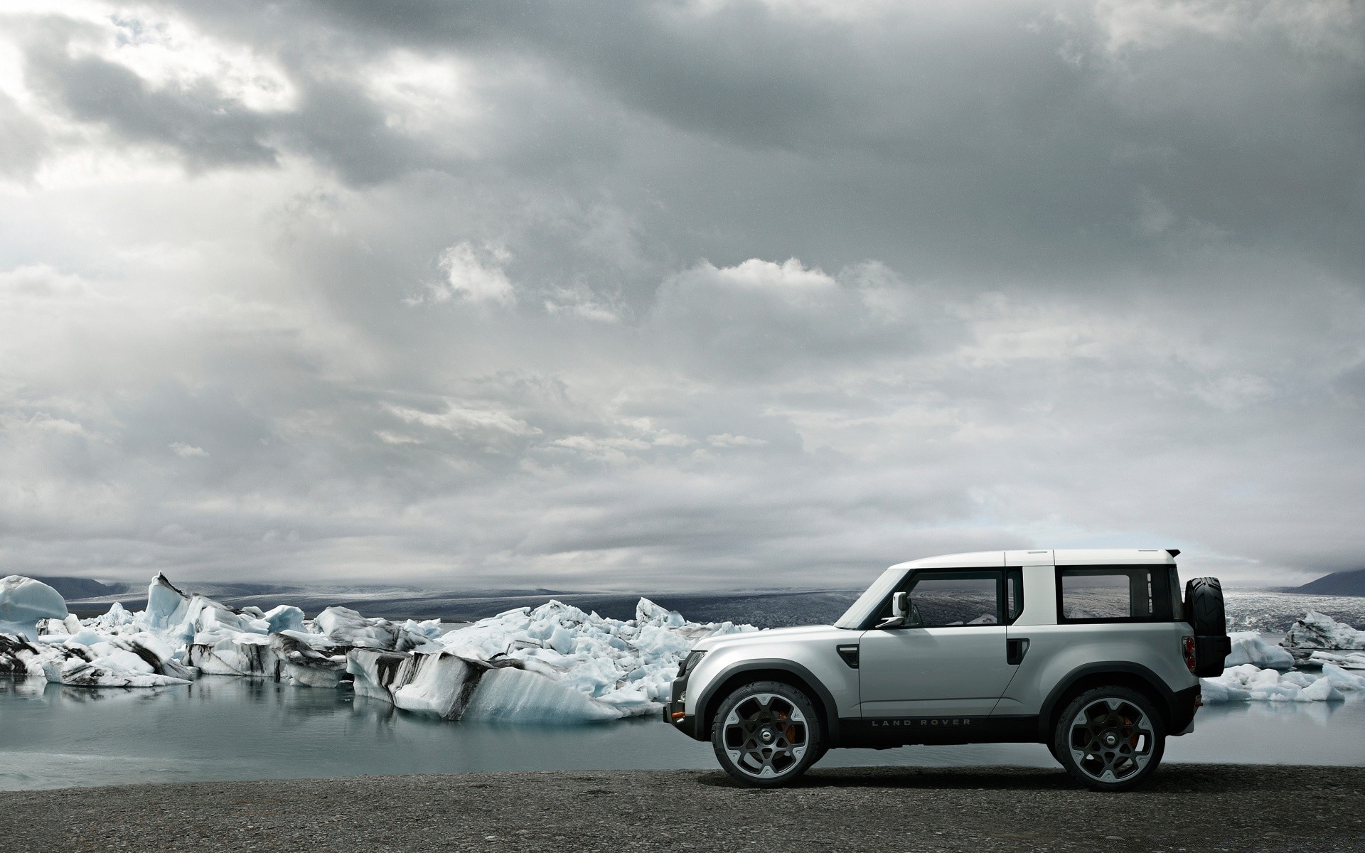 A white car on the background of an ice drift
