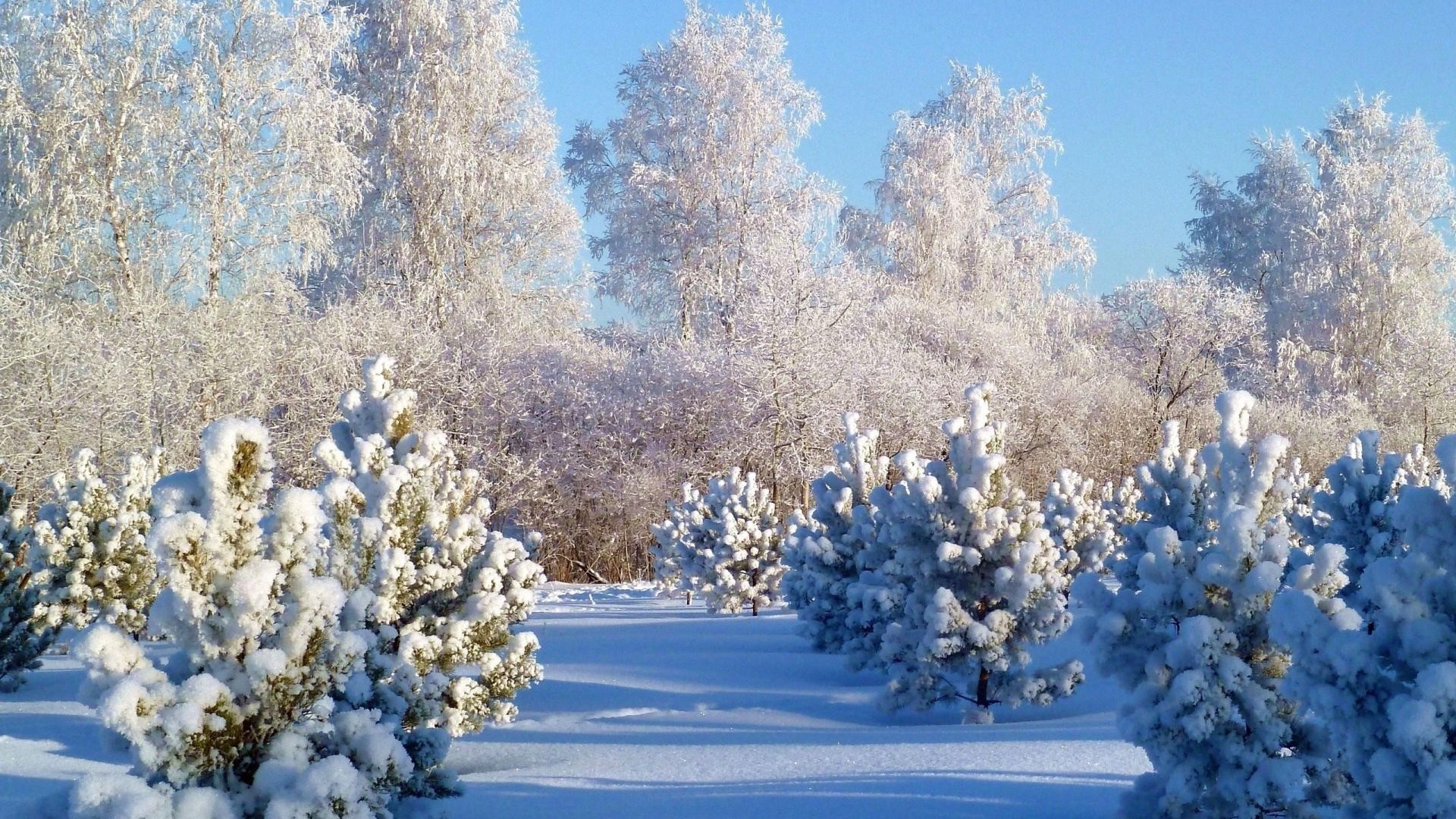 A fabulous New Year's picture. A Christmas tree in the snow in the middle of a fairy tale