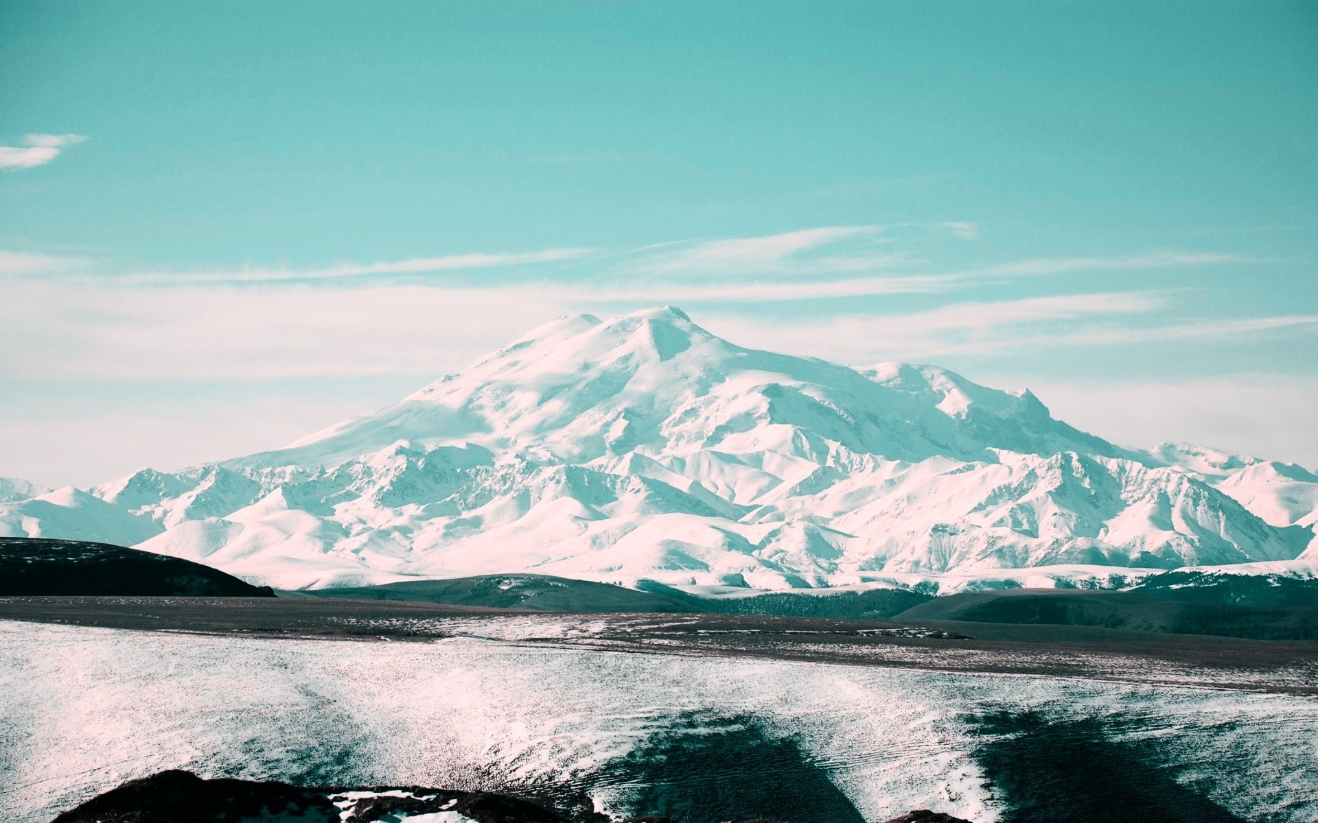Black and white photo of a mountain in the snow