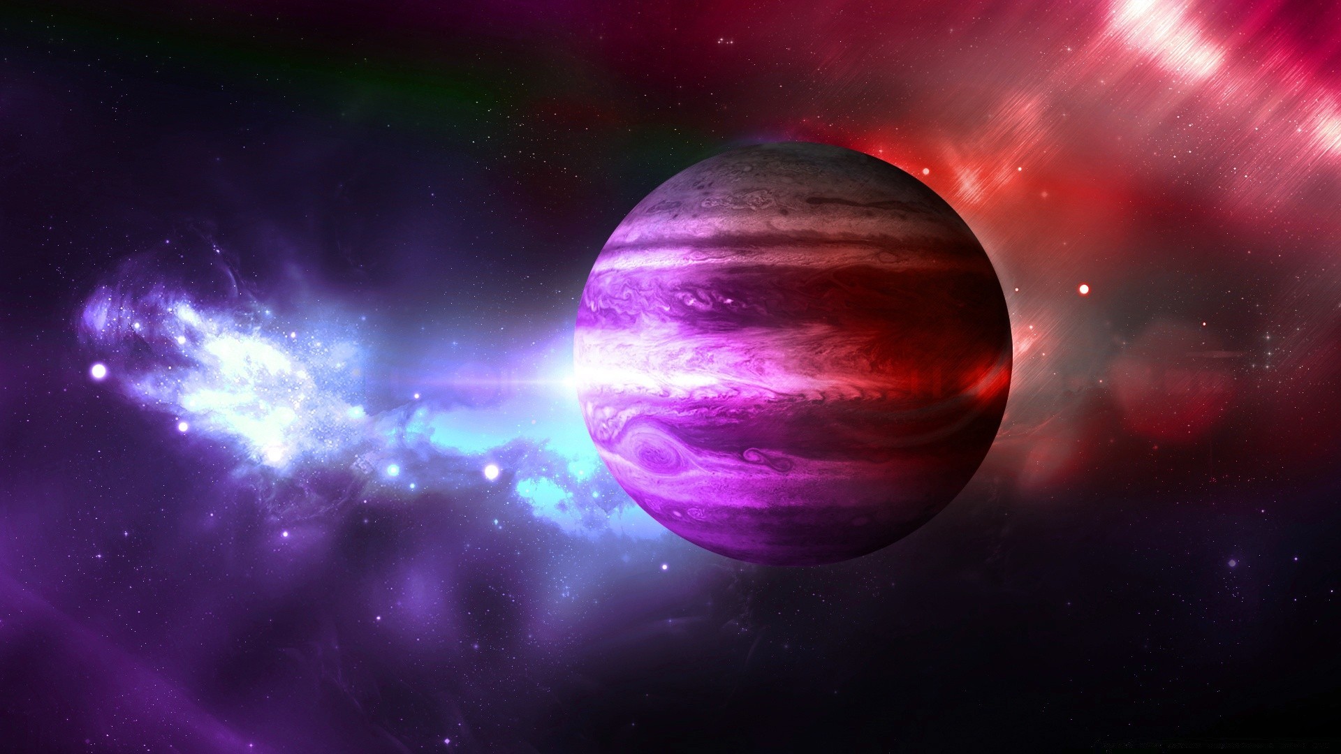 Many purple galaxies in space