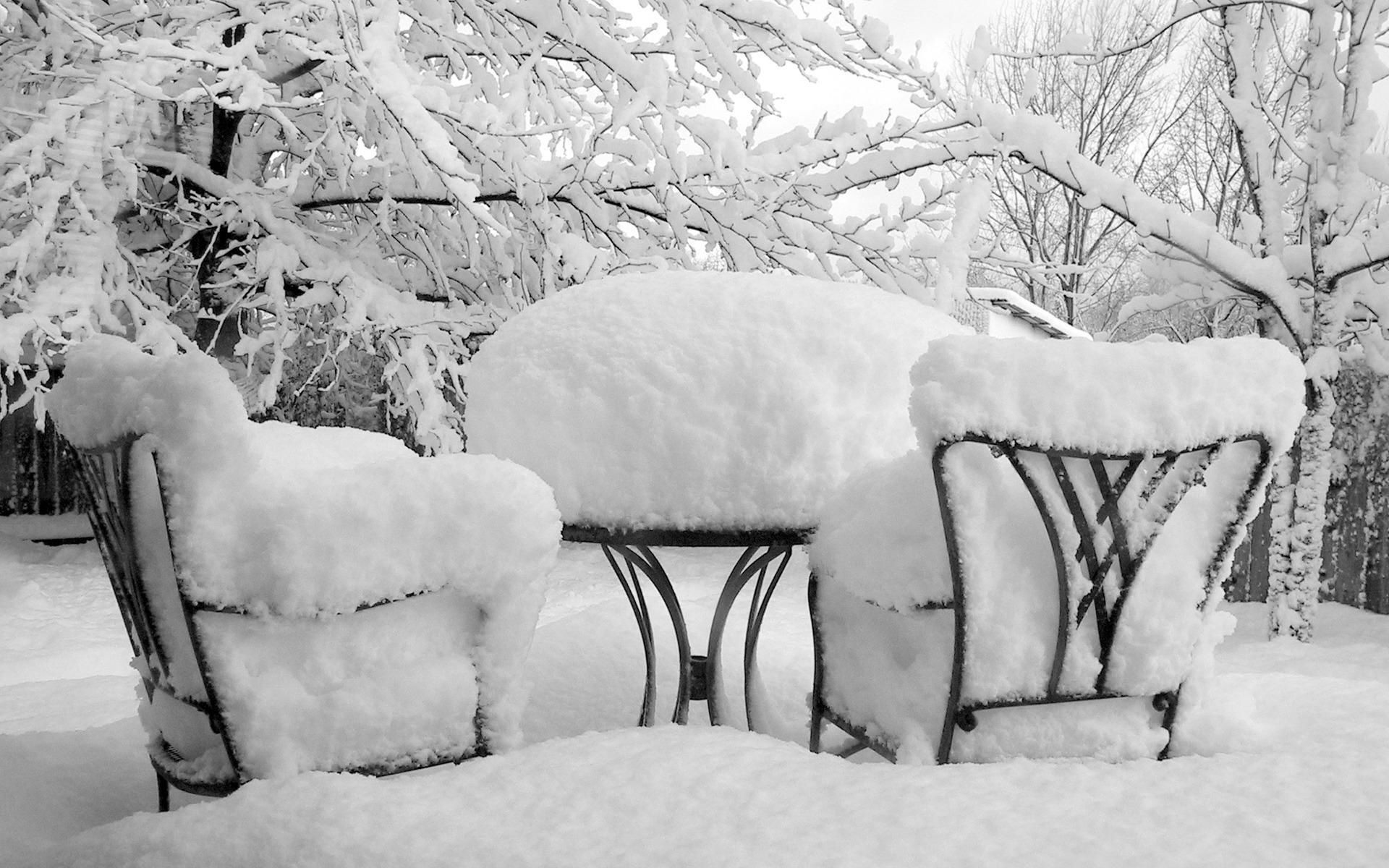 Garden furniture in snowdrifts