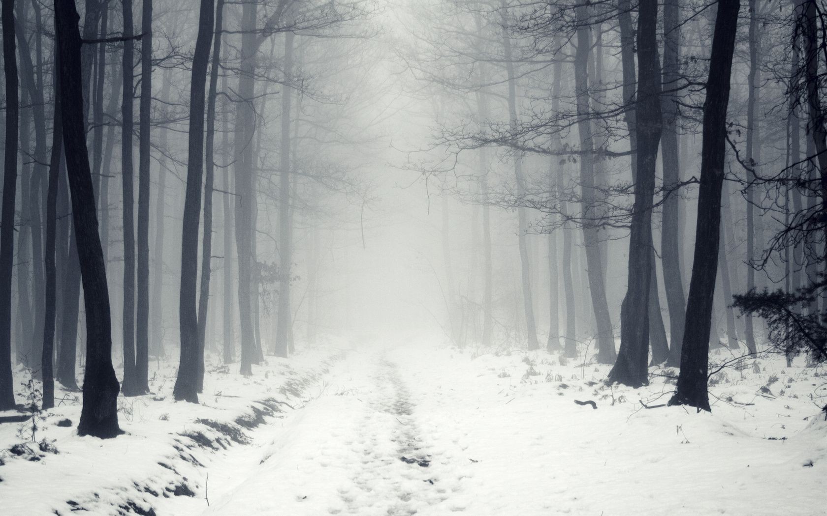 A landscape depicting a cold white winter