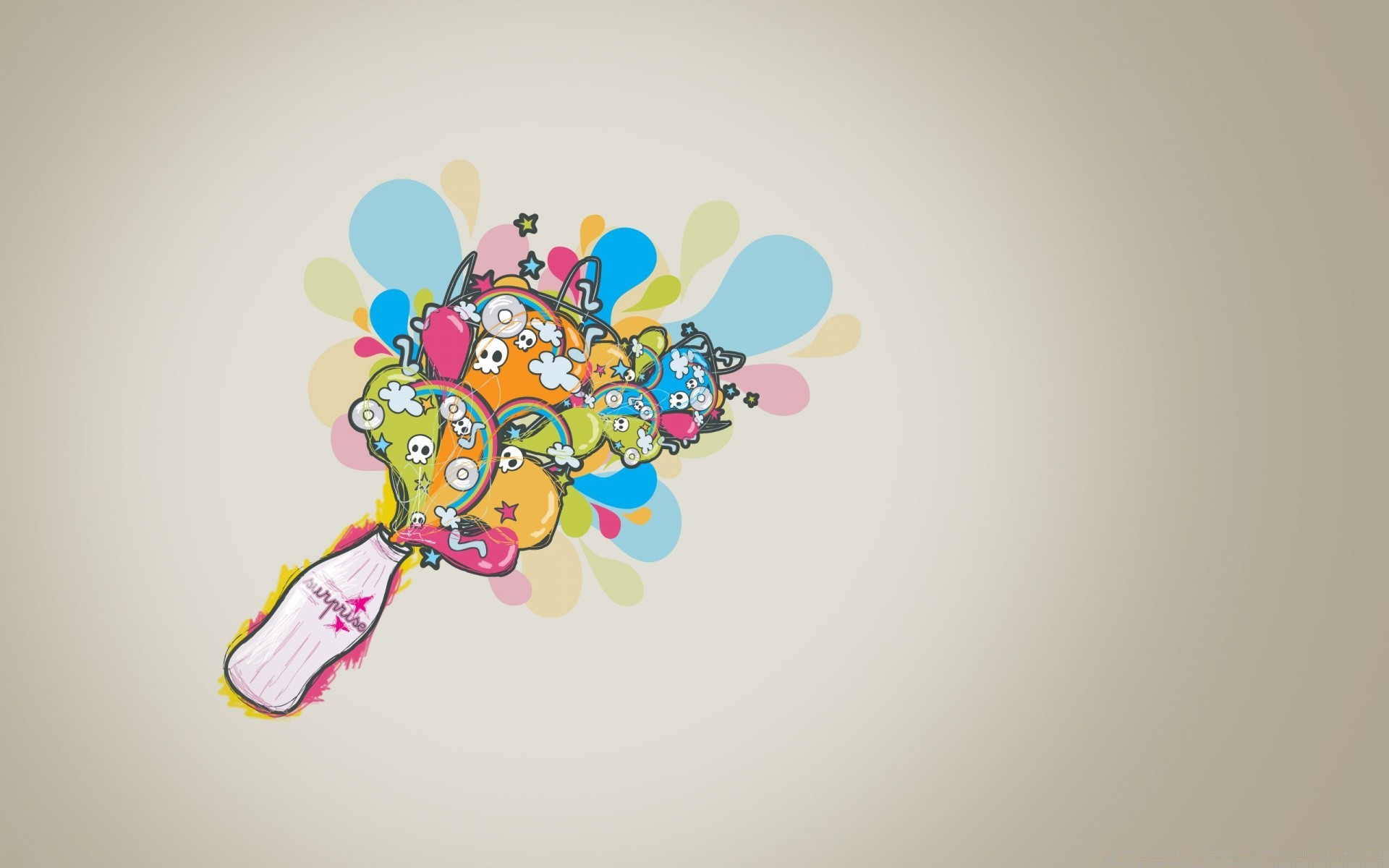 Image of a bottle with bright liquids escaping from itImage of a bottle with bright liquids escaping from it