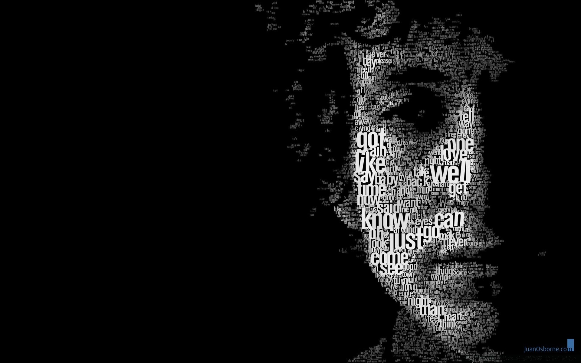 Portrait of a man we are made of latin letters on a black backgroundPortrait of a man we are made of Latin letters on a black background