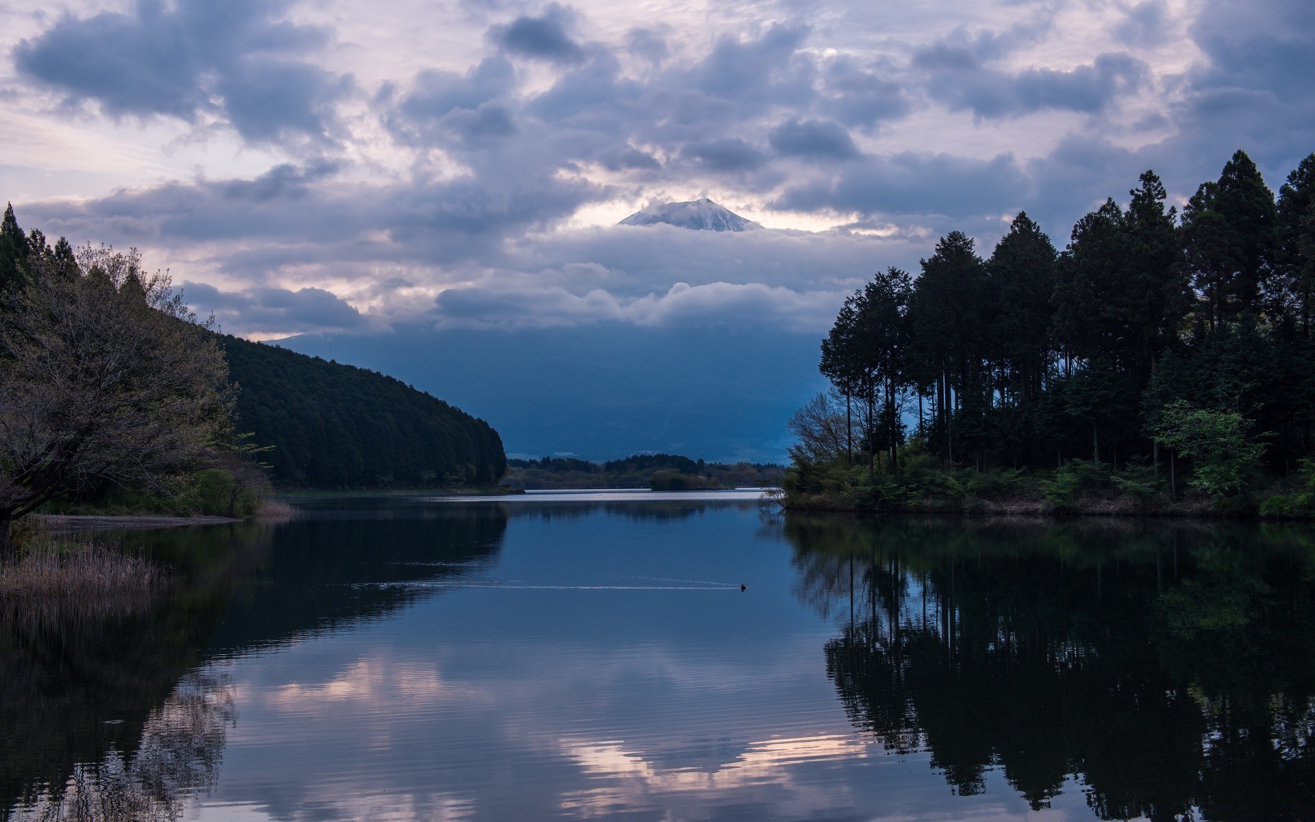 A landscape with a very blue sky and a bright blue lakeA landscape with a very blue sky and a bright blue lake