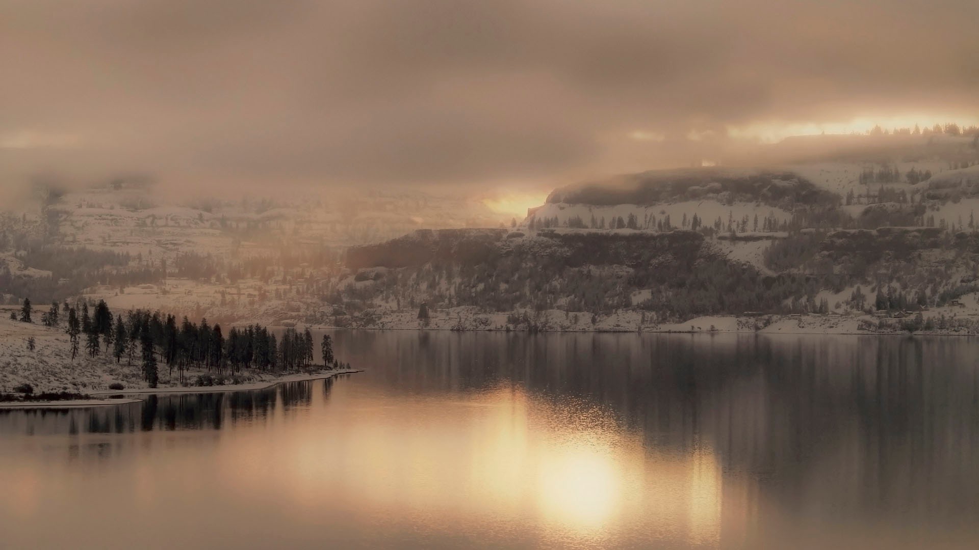 Photo landscape with the image of a transparent pond among stones against the background of a high coniferous forest and mountains