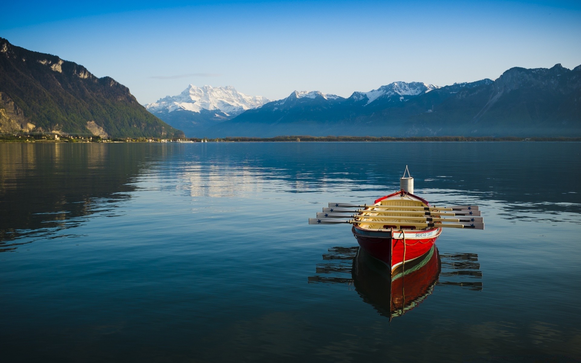 Reflection of the mountains in the blue lake