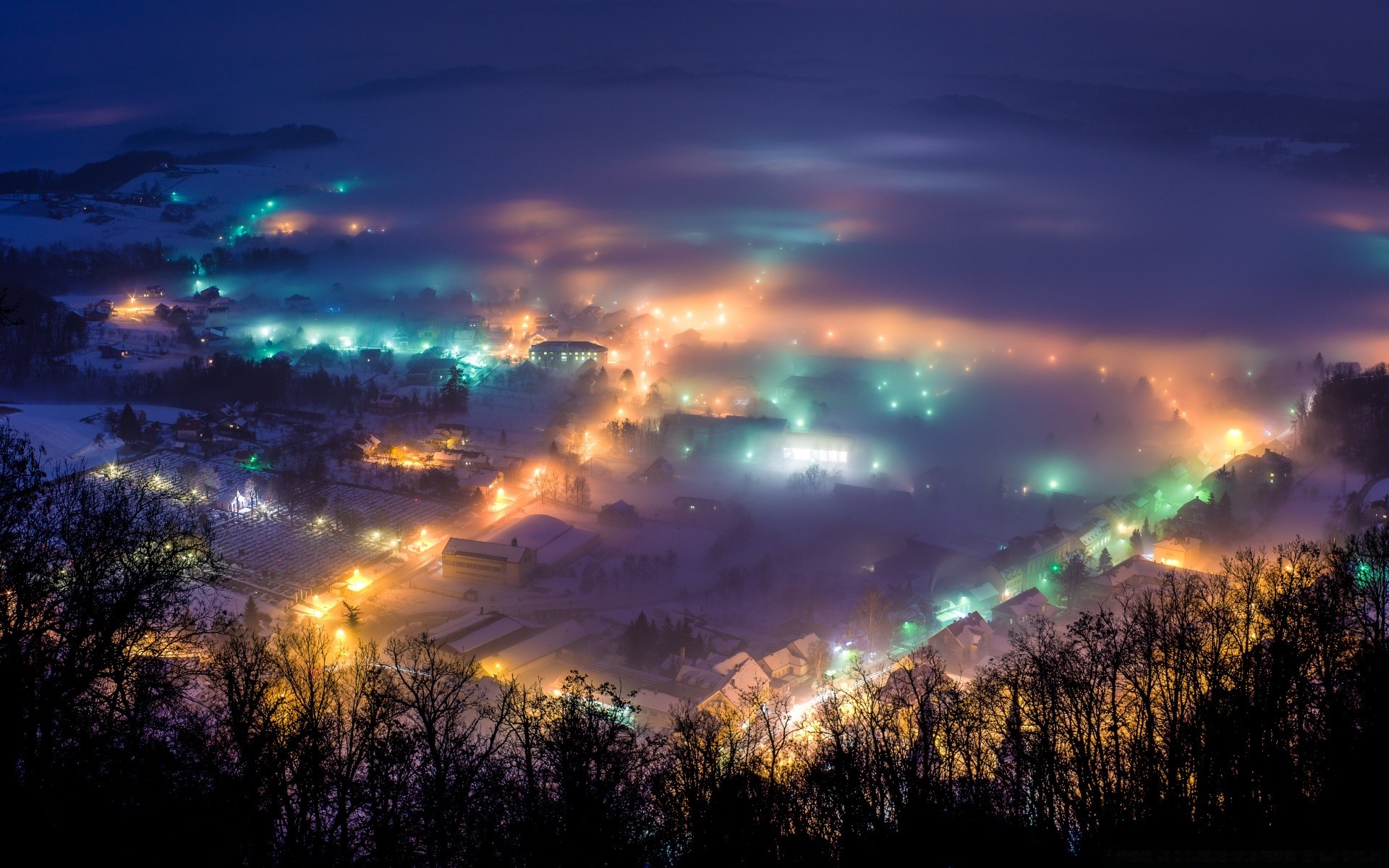 Lanterns in the park with fabulous winter lightingLanterns in the park with fabulous winter lighting